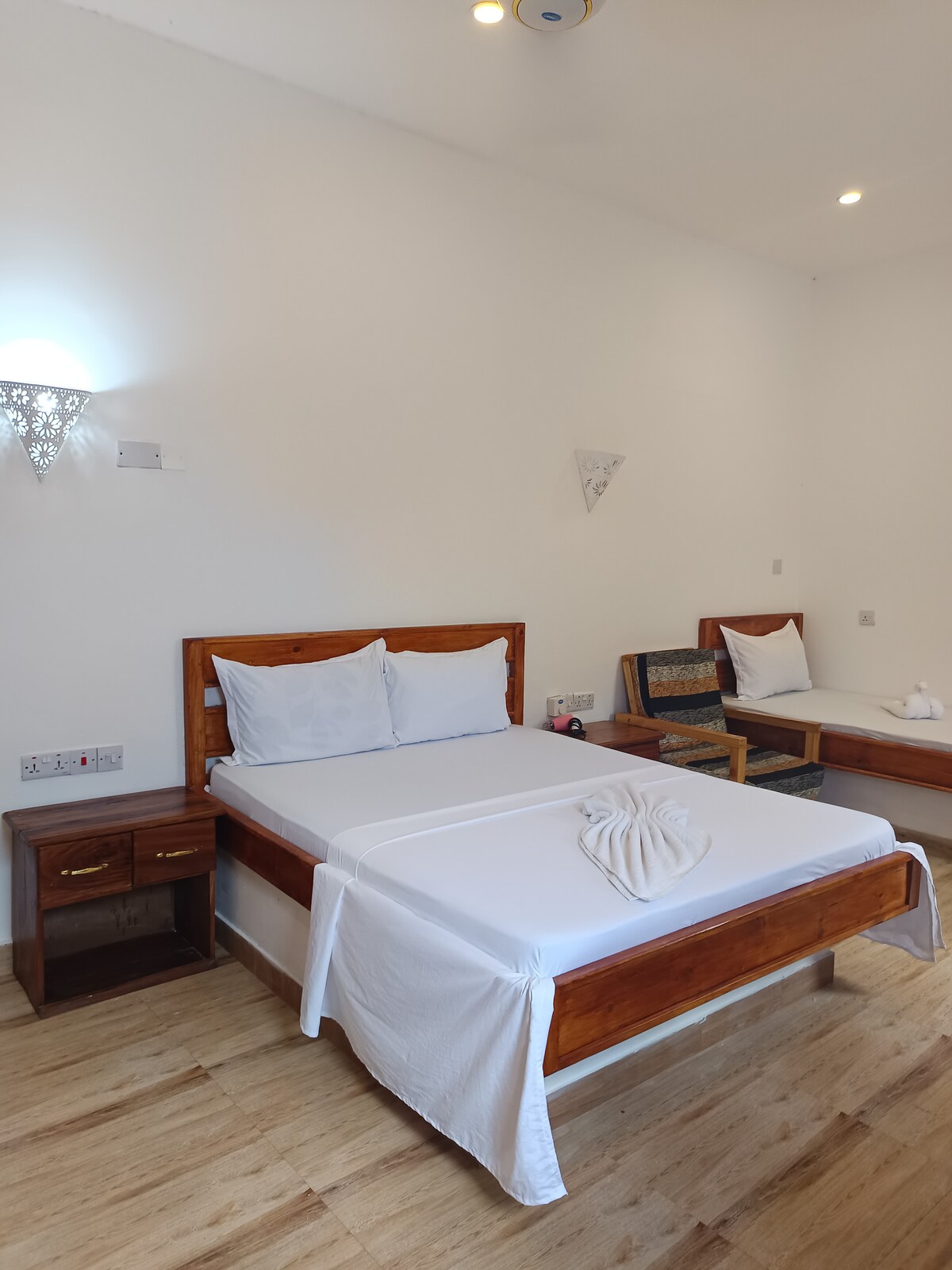 Din il-kamra b 'veduta tal-baħar fis-sular t' isfel għandha terrazzin fuq barra mgħammar b 'aċċess dirett għall-bajja u tista' takkomoda sa 2 persuni. Huwa mżejjen bi stil Swahili mdawwal u modern b 'veduta tal-baħar u għandu kamra tal-banju ensuite b' doċċa u bidè. Il-kamra tinkludi aċċess għall-internet bla fili, fann, arja kkundizzjonata, faċilitajiet biex tagħmel it-te u l-kafè, sikur u hairdryer. Il-kmamar kollha jitnaddfu u jingħataw servizz ta 'kuljum.