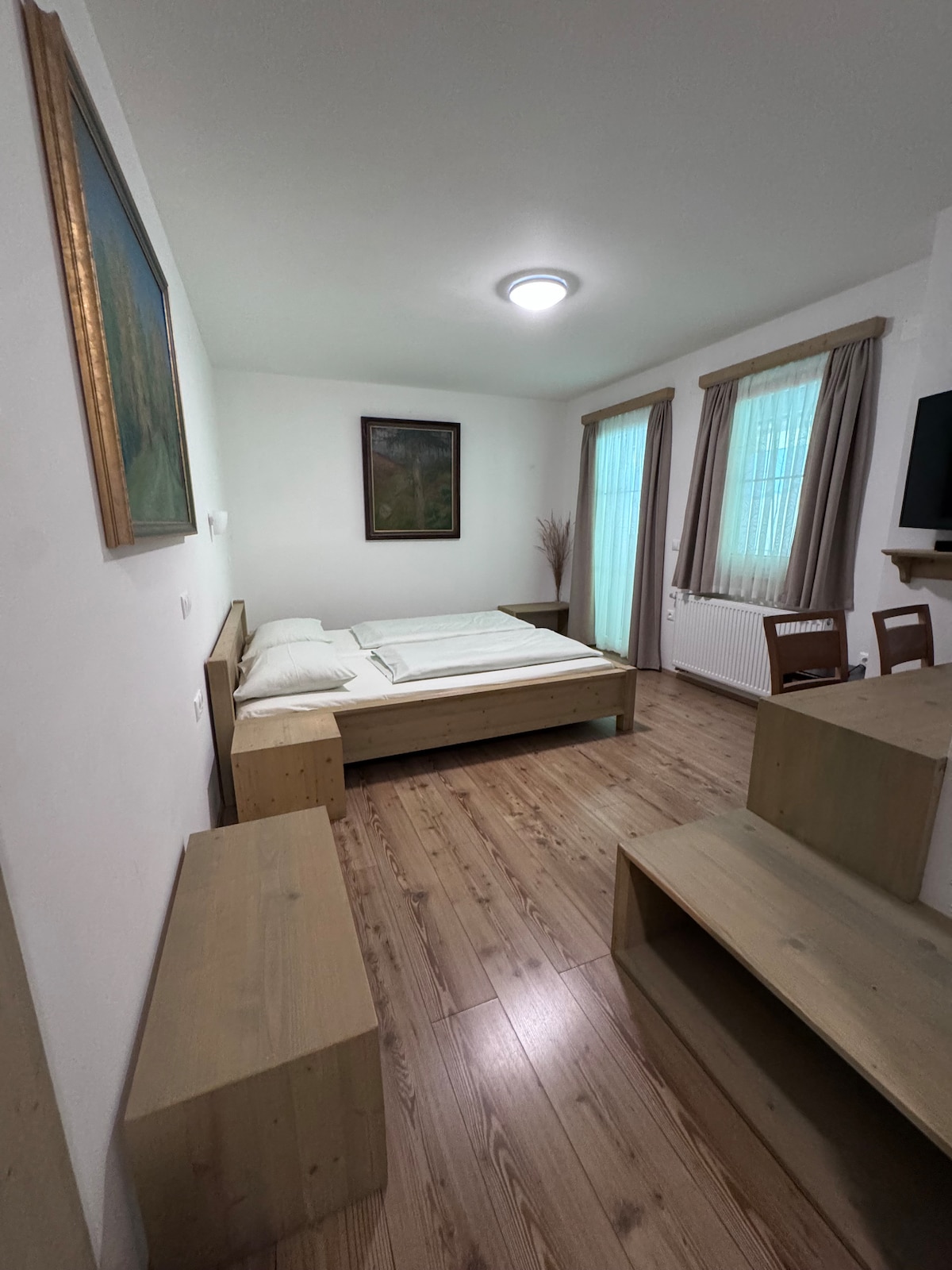 Kmamar ġodda f 'lukanda li jħarsu fuq ristorant tajjeb għall-familji b' aktar minn 50 sena. 8 ikmamar tas-sodda mgħammra sew. Qrib l-ajruport ( 2 minuti), Bled (30 minuta), Ljubljana (20 minuta), inklinazzjonijiet tal-iskijjar Krvavec (15-il minuta)