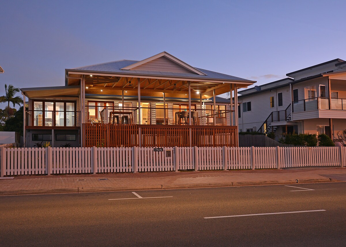 Queenslander sublime faċċata tal-bajja f' post mill-isbaħ b' veranda kbira fuq veduti spettakolari tal-ilma, air con, parkeġġ għad-dgħajjes u mixja lejn kafetteriji u ristoranti. Idealment tinsab fil-qalba tal-moll ta' Urangan li toffri 4 ikmamar tas-sodda, 3.5 kmamar tal-banju, oċean/bajjiet tul it-triq, riħ tal-baħar u veduti lejn K' gari(il-Gżira ta' Fraser) u l-Pier. Rinnovat frisk b' terrazzin spazjuż. It-twieqi panoramiċi u l-bibien li jintwew joħolqu spazju fuq ġewwa/fuq barra biex tirrilassa u tgawdi l-veduti mill-isbaħ u r-riħ tal-baħar