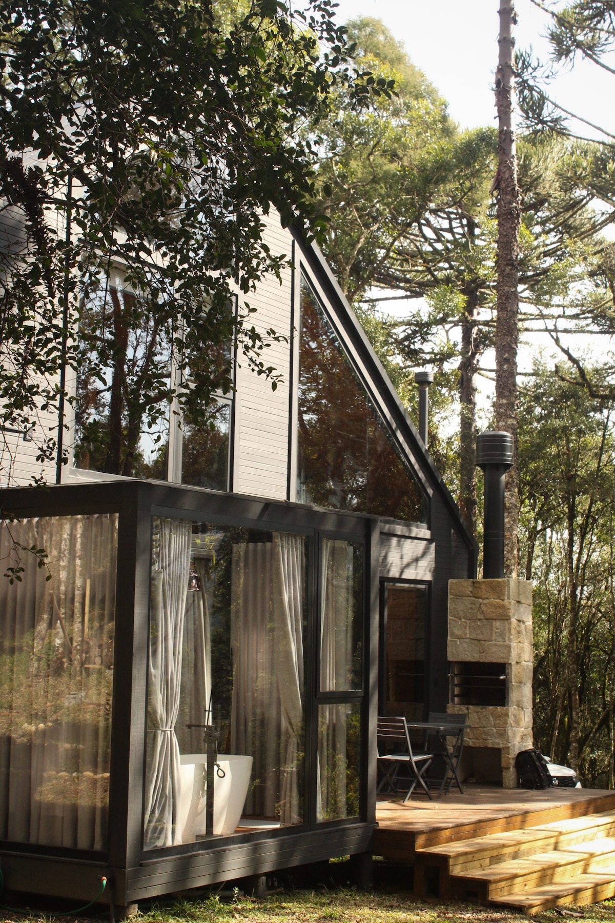 Ħdejn SERRA DO RIO DO RASTRO. Il-kabina għandha veduti "ħodor" madwarha. Il-banju jinsab taħt il-canopy u integrat bis-sħiħ man-natura, huwa bħal li tkun fil-bosk, iżda bil-kumdità u s-sigurtà li tkun fuq ġewwa. Il-post huwa pjuttost privat u kwiet, ħlief għall-kanzunetti tal-għasafar. F' jiem bix-xita, is-saqaf tal-ħġieġ joqrob lejn il-kuntatt u s-sens ta' rilassament. Għandu ilma sħun fuq il-viti kollha msaħħna bil-gass.