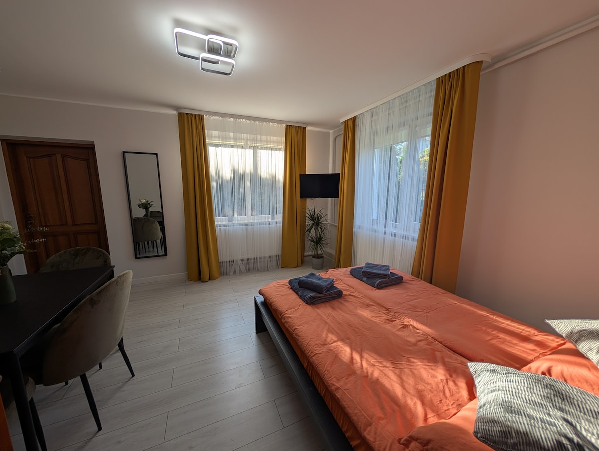 Appartament li għadu kif ġie rranġat, 10 minuti bil-mixi 'l bogħod mill-Ajruport ta' Vilnius. Dan l-ispazju, kompatt imma mfassal bi ħsieb (19m ²), joffri dak kollu li teħtieġ għal waqfa ta' malajr jew żjara itwal. Post perfett fejn tista' terġa' tistrieħ qabel it-titjira tiegħek u tistrieħ lejl tajjeb f' sodda ta' daqs queen! ✈️