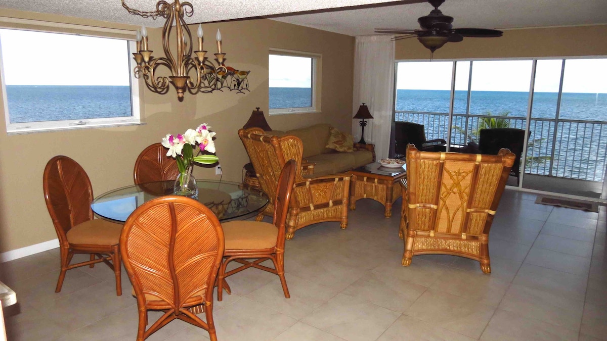 Impekkabbli nadif - Għamara ġdida sabiħa f 'condo privata. Kumpless ta 'quddiem tal-oċean b' pixxina msaħħna f' Key Colony Beach. Il-kondominju għandu sodda doppja 'king', kamra tal-banju ġdida b 'doċċa walk-in u kċina mgħammra b' dak kollu li għandek bżonn biex issajjar ikliet kompluti (cooker, forn, toaster, microwave, blender, friġġ, eċċ). TV intelliġenti ġdid b 'Kejbil/Wifi b' xejn u kelliem intelliġenti għall-mużika. Irrilassa fuq il-gallarija privata ta 'wara jew bajja privata sabiħa b' siġġijiet tas-salott, imwejjed tat-terrazzin, tiki u grills tal-BBQ għall-użu tal-klijenti.