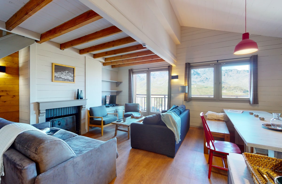 Valthorens Cosy Coeur de Val Thorens Appartament Duplex Silveralp 328 Is-saqajn tal-għoljiet ta' Esprit chalet, It-tielet sular, terrazzin, veduta tal-muntanji mingħajr xkiel li tħares lejn il-Lvant, 47 m2 Dekorazzjoni tipika u rfinuta Jinsab fil-qalba tar-raħal ta 'Val Thorens, f' qiegħ l-għoljiet, f 'waħda mill-iktar toroq kwieti tar-resort. Qrib skejjel tal-iskijjar u 'l bogħod minn bars storbjużi.