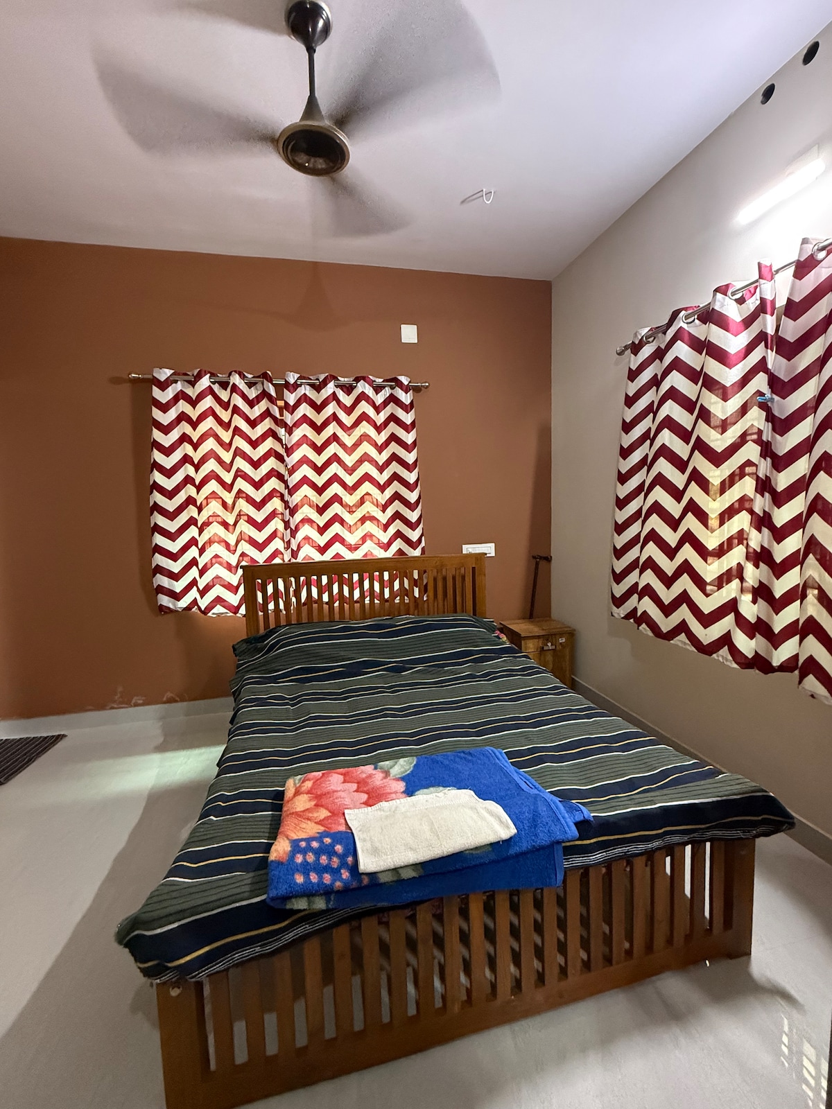 Experience tranquility in our cozy one bedroom home in Attoor, Thrissur, Kerala. Enjoy free WiFi, a dedicated workspace, and essential amenities for a comfortable stay. Discover the peaceful village life of Panjal, famed for Athirathram rituals, and explore nearby attractions like Kerala Kalamandalam, the prestigious Kathakali school. Perfect for those seeking peace, culture, and wellness amidst lush greenery. Includes air conditioning and a washing machine.