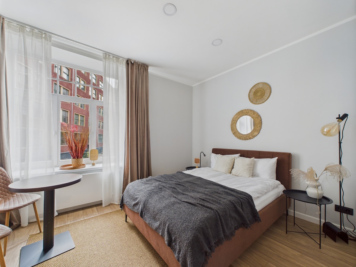 Merħba fl-appartament ġdid fjamant tagħna fil-qalba ta' Riga! Dan l-appartament paċifiku u modern b' kamra tas-sodda waħda huwa l-post ideali fejn toqgħod għaż-żjara li jmiss tiegħek fil-belt. Gawdi minn irqad kwiet ta' lejl bi twieqi li jħarsu lejn bitħa kwieta, u rrilassa fuq il-gallarija privata tiegħek stess. Barra minn hekk, b' parkeġġ bla ħlas inkluż u parkeġġ komdu mill-bogħod, se jkollok dak kollu li teħtieġ għal żjara mingħajr stress biss ftit passi 'l bogħod mill-attrazzjonijiet ewlenin kollha tal-belt. Merħba!