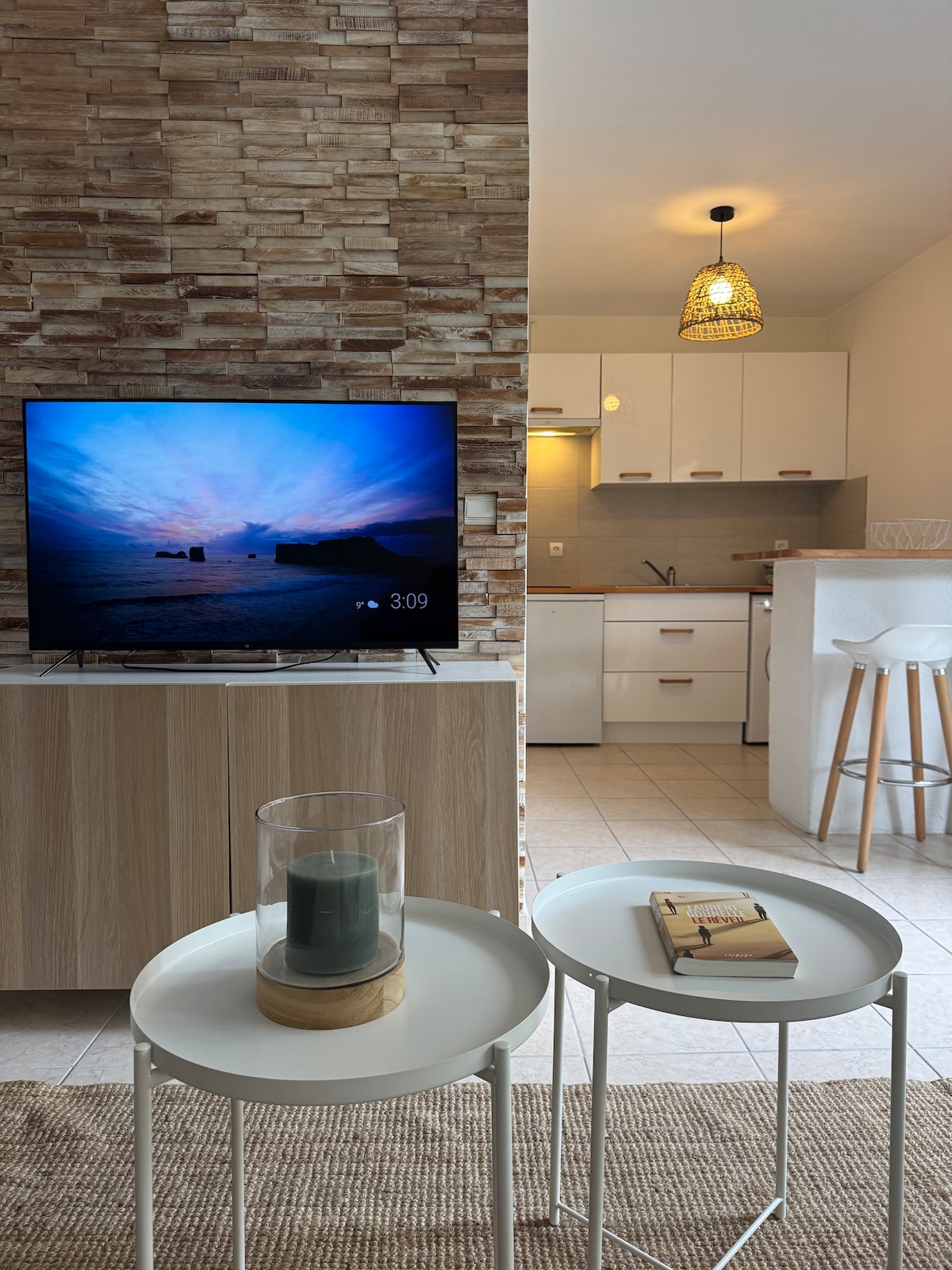 Appartament eleganti u kwiet, irranġat, stil tal-cocooning. Għandu dak kollu li għandek bżonn kuljum. Tinsab fiċ-ċentru ta 'Golfe-juan, 800 metru' l bogħod mill-bajjiet u qrib il-kumditajiet kollha (xarabank, stazzjon tal-ferrovija, spiżerija, supermarket...) Din il-proprjetà tinsab f 'post mill-aqwa, tinsab biss 10 minuti' l bogħod minn Cannes. L-ispazji għall-viżitaturi huma preżenti ġewwa r-residenza u 3 parkeġġi pubbliċi bla ħlas madwarhom. Residenza lussuża sigura ma 'caretaker. Tindif imtejjeb għall-COVID