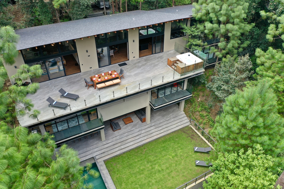 Dar li tħares lejn il-lag u l-muntanji, f 'nofs il-foresta, bil-ġnien tagħha ta' 5,000 m2, pixxina privata bit-tisħin u gym privat; li tinsab f' suddiviżjoni b' sigurtà 24 siegħa kuljum. Disinn arkitettoniku f 'irregolarità b' soqfa għoljin għal żewġ ilmijiet, travi u kolonni tal-injam, ħruq aħmar, tajn u injam. Dekorazzjoni b 'elementi tradizzjonali ta' dar Messikana kontemporanja. Imdawwal b 'mod eċċezzjonali li jħares lejn il-foresta u l-ġonna minn kwalunkwe tieqa.