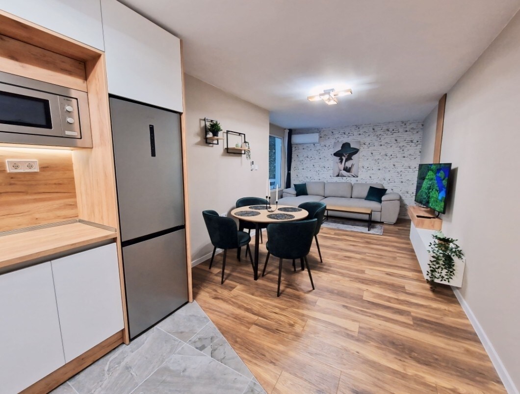 Elegant & Cozy Studio – Varna Center Stylish and quiet studio, ideal for couples or solo travelers. Features a 50” Smart TV, ambient lighting, cozy seating area, and comfy queen bed. The kitchen is fully equipped with oven, cooktop, hood, fridge, and washer-dryer. Enjoy fast Wi-Fi, inverter A/C, and a relaxing atmosphere just 20 mins from the beach and city center. Perfect for a calm, elegant Varna stay.