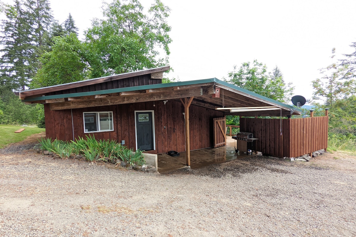 Esperjenza veduta tal-lontri tax-xmara Columbia fil-kabina li hija 'l bogħod mill-bini l-ieħor. Dan jinkludi sħana, internet tajjeb, diversi stazzjonijiet tat-televiżjoni streaming u sodda trundle li jsiru sodda king size b' armarji u sink tal-ilma kiesaħ. L-irtirar tiegħek jinkludi gazebo b' barbecue bil-propan, fossa tan-nar u outhouse. Bjankerija tas-sodda, oġġetti tat-tisjir, platti, żejt, kafè, te, kaxxa tal-kafè, eċċ. huma pprovduti wkoll. L-aċċess għad-dar tal-moll jinkludi doċċa u kamra tal-banju msaħħna flimkien ma' kċina sħiħa.