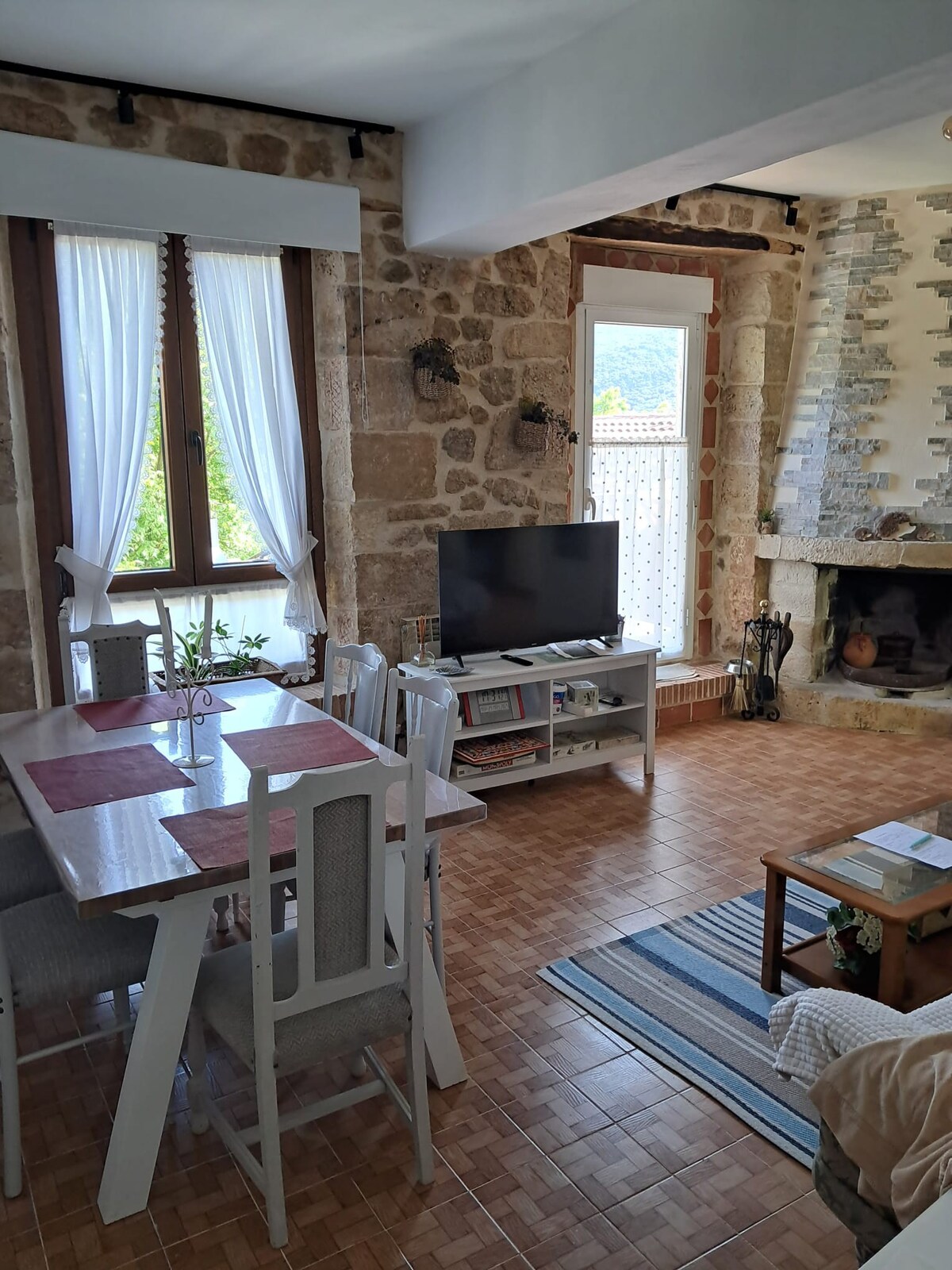 Cottage rurali magħmula minn ġebel u saqaf inklinat, oriġinali miż-żona b 'post u veduti li ma ssib bħalhom imkien iktar, għandha foresta privata tal-liżar u faqqiegħ b' mejda tal-pikniks tagħha stess u razzett estensiv biex timxi f 'ambjent li ma jitqabbel, 2 sulari, 3 ikmamar waħda minnhom b' sufan u tv, Barbecue - Fireplace fuq barra, Ilma tajjeb, terrazzin mgħotti, terrazzin ta 'veduta - terrazzin tal-ġebel sospiż fuq l-għoljiet b' veduti impressjonanti tal-wied u l-muntanji, kif ukoll id-dar kollha.