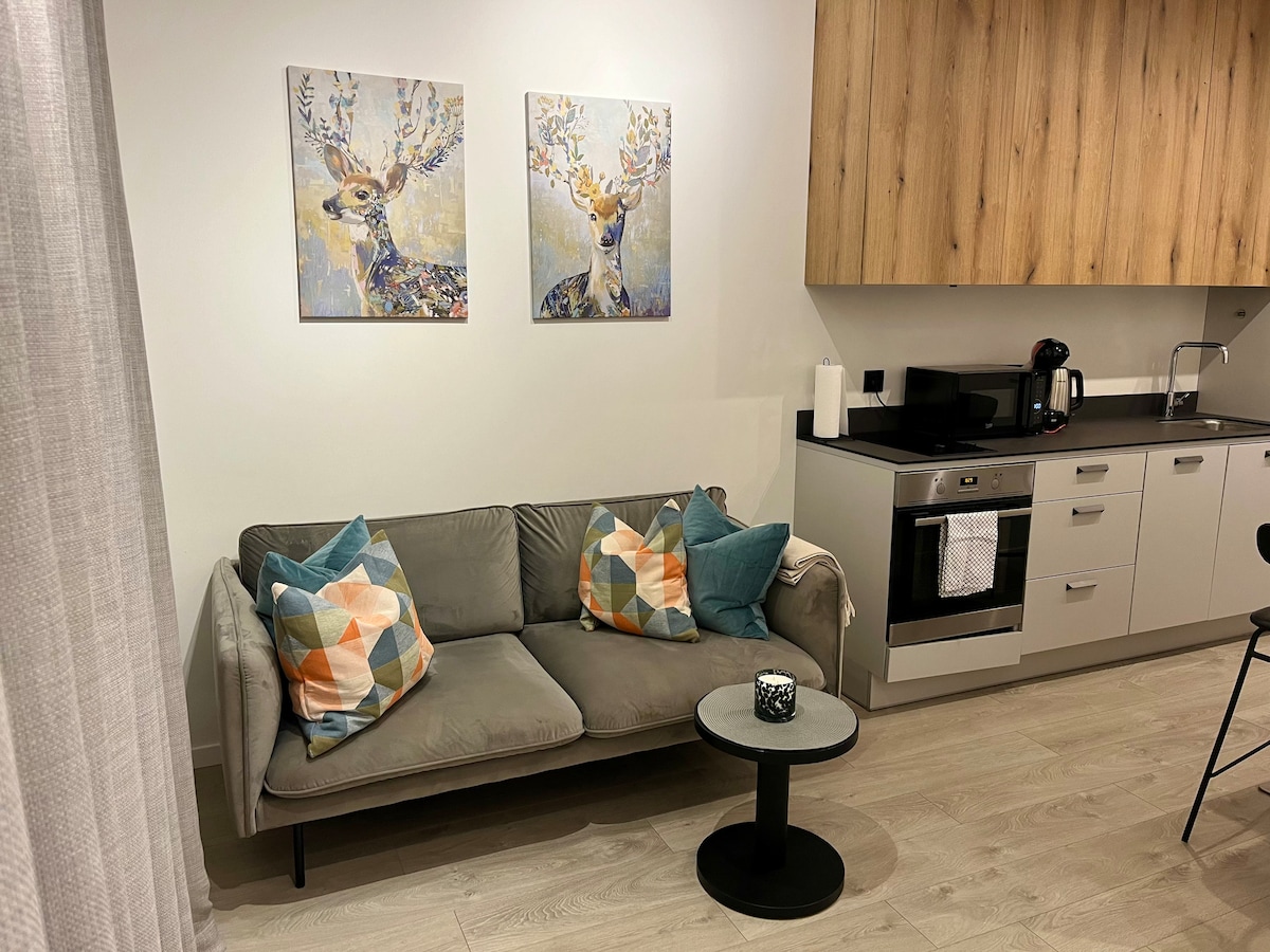 Excellent, calm and central 📍location – walking distance to Vilnius Old Town, main streets, restaurants, shops, bars, and cafes. This modern studio is ideal for up to two guests. It offers a comfortable living space, a fully equipped kitchen, and a private balcony. The queen-size bed ensures a restful night’s sleep, while the bathroom features a shower, fresh towels, and toiletries. The open-plan layout combines the living, kitchen, and sleeping areas, creating a bright and functional space.