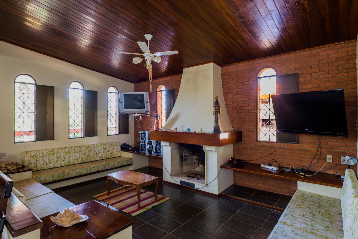 Dar b 'sular wieħed siegħa minn São Paulo, 3 suites fid-dar ewlenija u fl-anness; żewġ kmamar tas-sodda bl-arja kkundizzjonata, kamra tal-banju waħda u salott wieħed; terrazzin b' forn tal-pizza, barbikju u pixxina. Fil-kamra tat-TV, fireplace, komdu ħafna. Lavabo. Kċina miftuħa għall-barbecue u l-forn tal-pizza. L-għodod kollha meħtieġa biex iż-żjara tiegħek tkun komda kemm jista' jkun. Ġnien kbir b'ħafna ħaxix madwar id-dar. Aħna 6 km 'il bogħod minn Fazenda Santa Barbara. PAKKETT TA' LEJL TA' SAN SILVESTRU MINIMU TA' 4 IJIEM