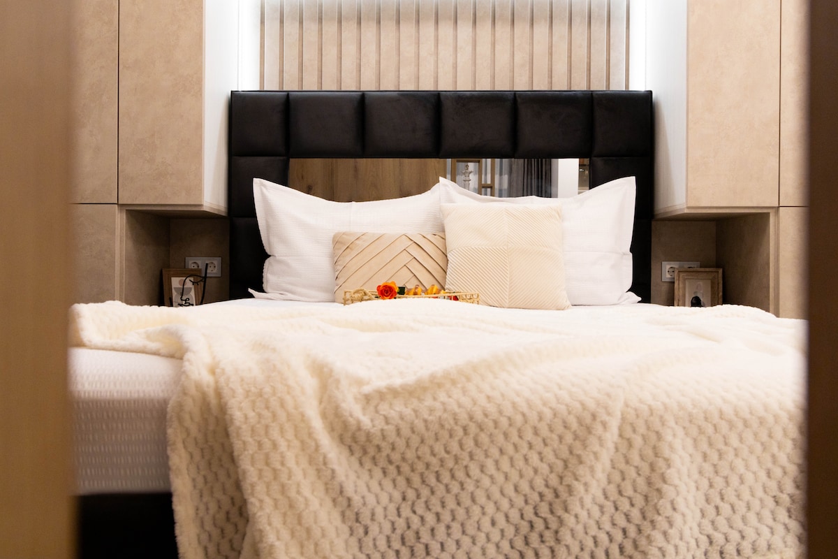 Suite b'Ċinema u Spa Privat Gawdi esperjenza unika f'ambjent affaxxinanti u senswali, magħżul bir-reqqa biex jiżgura lejl ta' rilassament u senswalità. Spa, ċinema, sodda king-size—kollox ġie ppjanat bir-reqqa. Agħmel sorpriża lill-partner tiegħek b'lejl li verament ma jintesa qatt. F'post ideali ġewwa Pipera Plaza, f'residenza ġdida fjamanta u kwieta. - L-Ajruport ta' Otopeni: 15-il minuta - Banjijiet Termali ta' Bucharest: 18-il minuta - Il-Park Herastrau: 10 minuti