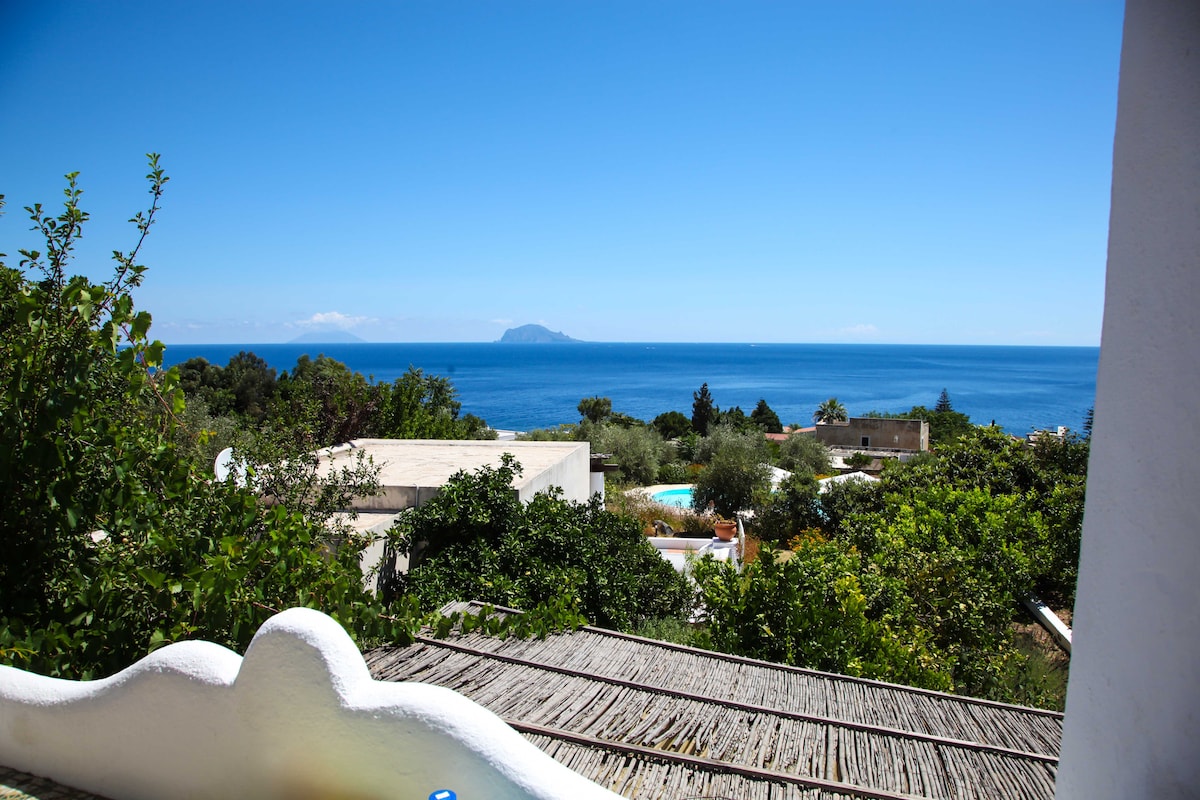 Kodiċi CIN: IT083043C2H2XXLNOH Merħba f' Salina, Isola Verde, ġojjell Mediterranju. Il-Villa tinsab f' Pollara, raħal żgħir u kwiet fil-Majjistral tal-gżira li jinsab fuq Caldera ta' vulkan antik. Il-propjetà tikkonsisti f' żewġt idjar tal-istil Aeoljan magħquda minn bitħa kbira, li fiċ-ċentru tagħha hemm siġra taż-żebbuġa ta' sekli kbar. F' pożizzjoni privileġġata, b' veduti ta' Filicudi u Alicudi, is-sema meta jinżel ix-xemx hija mdawwra bl-isfumaturi kollha tal-larinġ.