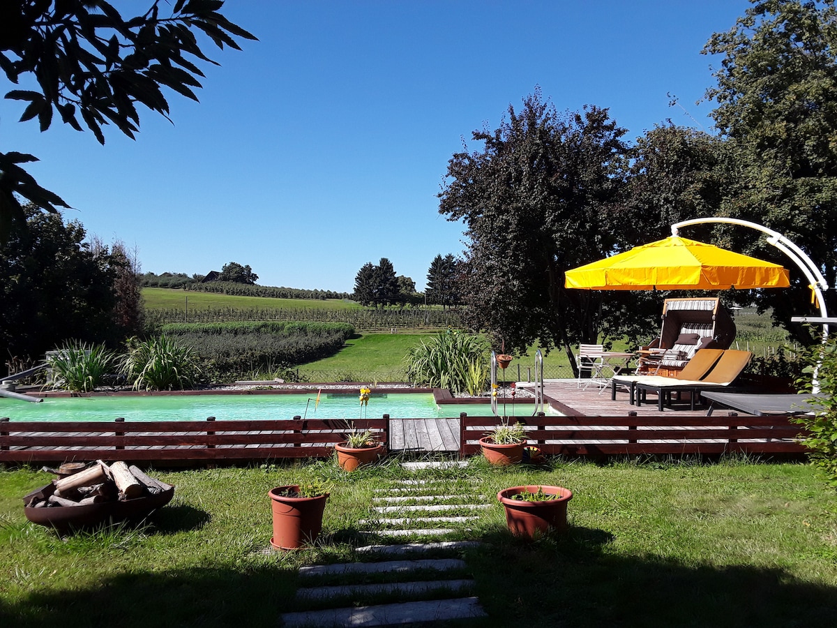Appartament b 'ġnien, pixxina u whirlpool