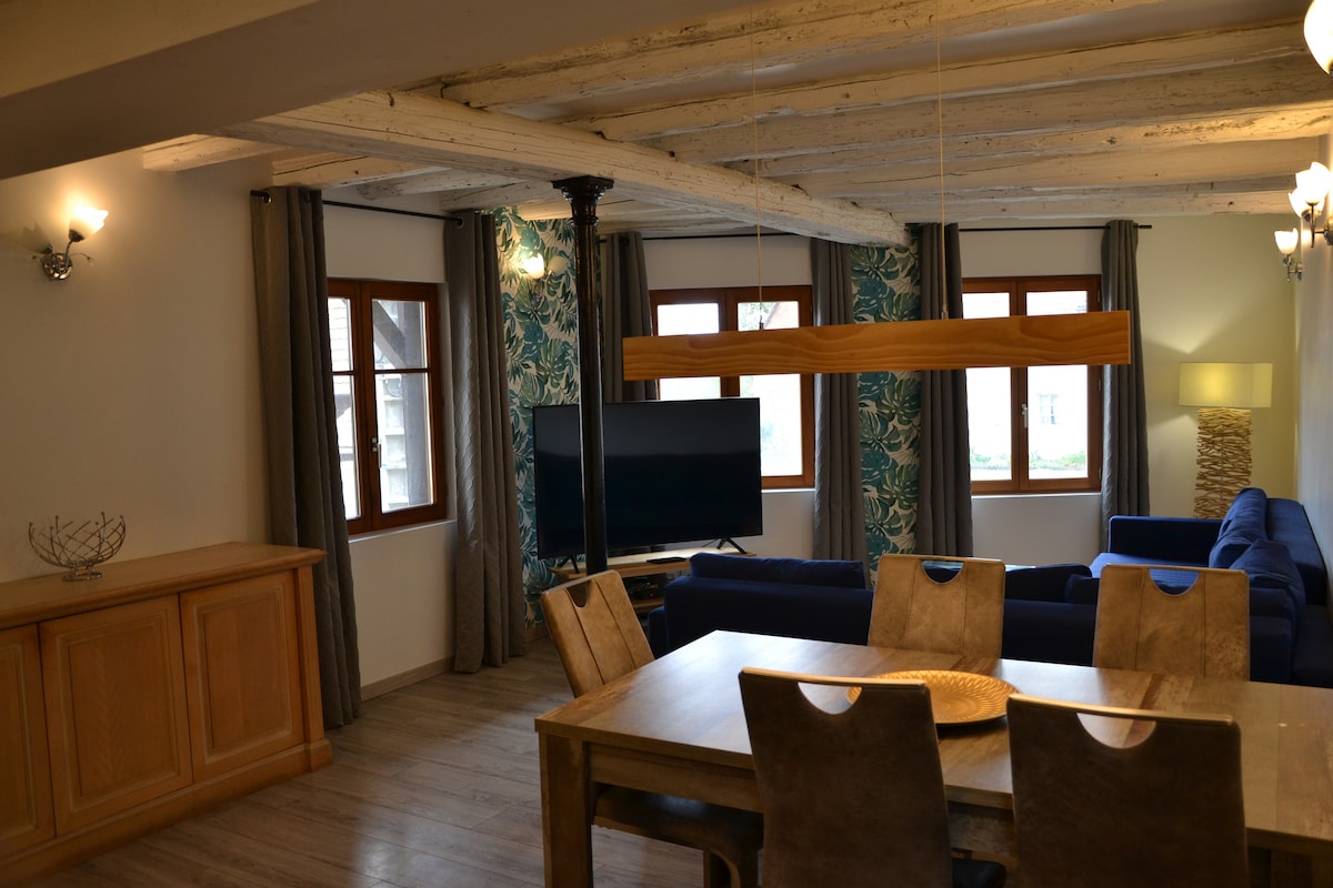 Ce grand studio rustique, indépendant et accueillant, est aménagé dans une ancienne grange avec poutres apparentes, au cœur d'un petit village alsacien typique à l'écart des sentiers touristiques. La gare à trois minutes à pied vous ouvre les portes de l'Alsace. Idéal pour jeune couple.