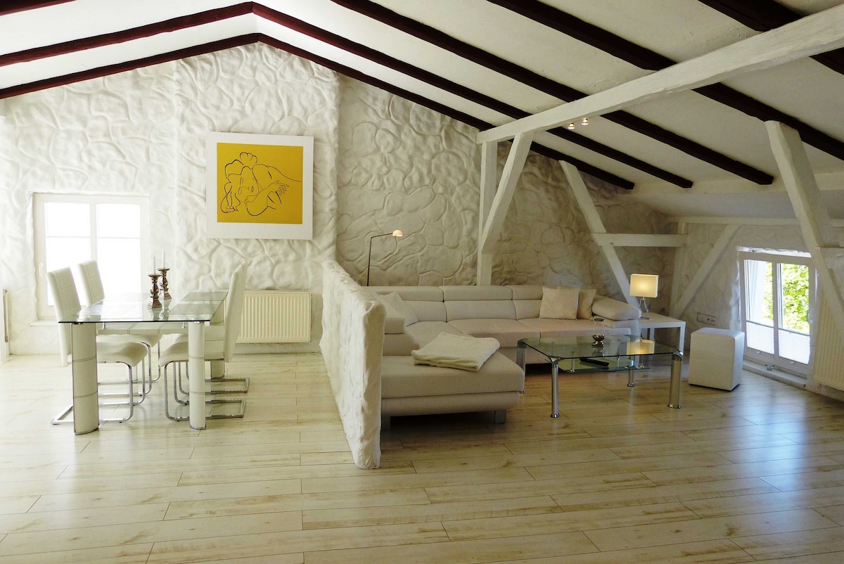 Se ssib appartament mgħammar b 'mod komdu, qawwi u ta' kwalità għolja ta' 50 metru kwadru fiċ-ċentru ta' Rostock. Iż-żona pedonali b 'xiri estensiv hija f' distanza ta' 3 minuti bil-mixi u l-KTV, id-distrett tal-moda ta' Rostock, hija wkoll ftit minuti biss 'il bogħod. Ir-rampi jinsabu 'l barra mill-bieb ta' barra u jistednuk timxi.