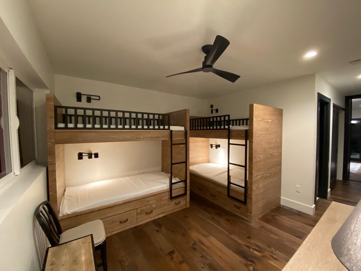 Suite tal-klijenti komda, divertenti u spazjuża għall-grupp tiegħek kemm għall-attivitajiet tas-sajf kif ukoll għax-xitwa! Soqfa ta' 10 piedi, mejda tal-pixxina u magna pinball, kif ukoll ħafna logħob u YouTube TV għad-divertiment wara l-iski jew attivitajiet oħra fuq barra tiegħek! 4 sodod (2 king, 2 queen) u 2 kmamar tal-banju. Kċina kompluta b' żona tal-ikel sa 8. Kamra tal-ħasil tal-ħwejjeġ kompluta bi prodotti. Waħħal garaxx wieħed ta' karozza għall-użu tal-klijenti, bi xkafef tal-iski/snowboard u dryer tal-boot/ingwanti, u spazju ieħor għall-parkeġġ barra mit-triq.