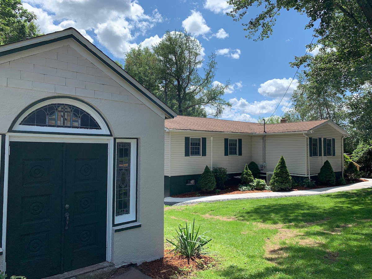 The Chapel's House is located on a rural property just 8 miles from Historic Honesdale, PA. There is a former chapel next to the house with some beautiful stained glass windows. At our property across the road we tap around 1800 maple trees for sap and convert it to pure maple syrup. It is available for purchase. Photography by David Jackman Studios.