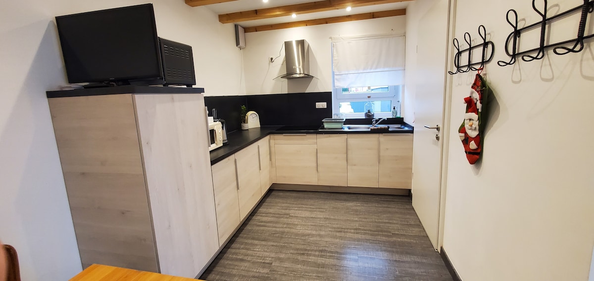 Appartament b 'żewġ sulari, li jinsab fuq wara ta' dar Alsatiana li tmur lura għall-1779, kompletament rinnovata. Filwaqt li għandha 95 m2, din l-akkomodazzjoni tista 'takkomoda sa 7 persuni b' mod komdu. Fis-sular t 'isfel, hemm is-salott kif ukoll l-ewwel kamra tal-banju b' toilet. It-tieni sular : żewġ kmamar tas-sodda ta '15 m2 (waħda b' kamra li tbiddel fiha), kamra tal-banju b 'doċċa u toilet walk-in u fil-kuritur, sodda waħda kif ukoll sufan sodda doppja. Appartament imdawwal.