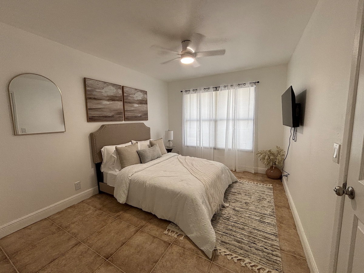 Cozy Chic Beach Queen, ispirat minn dekor modern ta' nofs is-seklu jinkludi doċċa/banju u skrivanija. Dan il-Hotel Condo storiku ta' Palm Beach huwa biss blokka u nofs bogħod mill-bajja jew jirrilassa qrib il-pixxina msaħħna tagħna. Ristoranti ta 'klassi dinjija f' distanza bil-mixi. L-ebda karozza mhi meħtieġa iżda l-valet parking huwa ta' $ 15 kuljum mit-8 a.m. sal-11 p.m. Jekk jogħġbok avża jekk iġġib karozza u parkeġġ quddiemhom għal 15-il minuta biss għaċ-checkin u itlob placard tal-parkeġġ fil-kaxxa postali 3018. Jekk jogħġbok irritorna l-placard meta titlaq jew tirriżulta f' tariffa ta' $ 50.