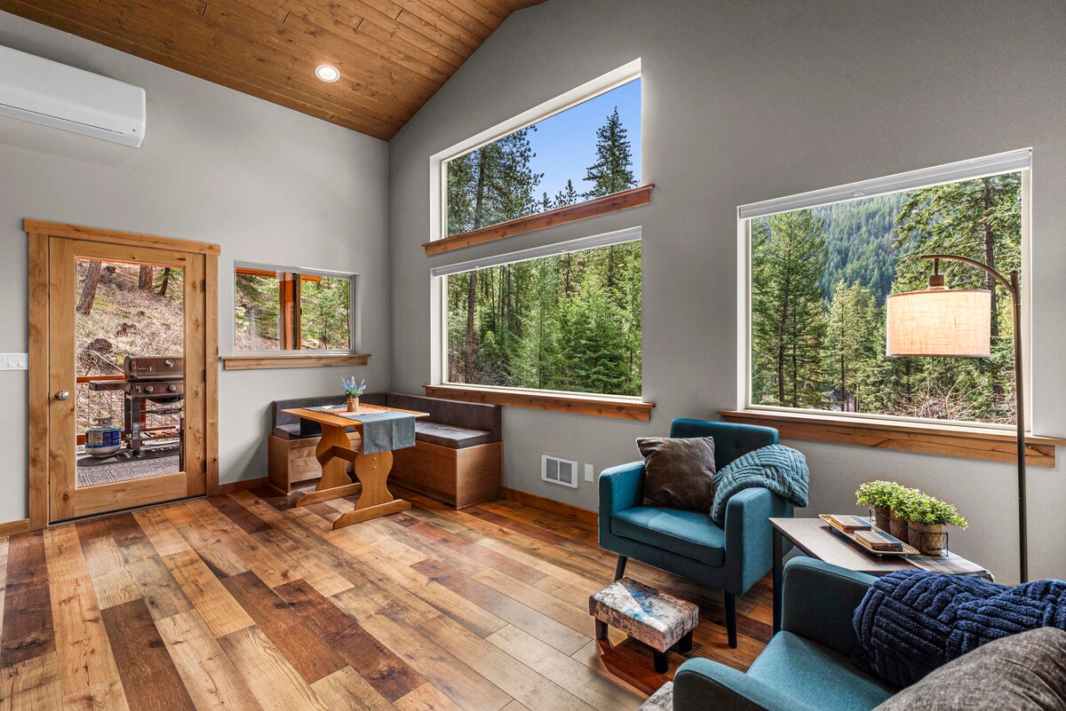 Meħud fuq 2.5 ejker ta 'segwaċi bis-siġar, il-PNW Hideout tgħaqqad il-kumditajiet moderni man-natura. Imxi 3 minuti lejn ix-Xmara sabiħa, mur 15-il minuta bil-karozza lejn Lake Wenatchee, jew gawdi l-attivitajiet sbieħ kollha li jinsabu biss ftit minuti 'l bogħod ġewwa Plain. L-internet b 'fibra b' veloċità għolja jagħmel il-kabina ġenna tax-xogħol mid-dar. Gawdi l-marshmallows spazjużi madwar il-fossa tan-nar, tixxarrab fil-hot tub, jew lounging ġewwa b 'nar li jaħraq l-injam. Jinsab 20 mil 'il bogħod miċ-ċentru ta' Leavenworth. STR#000267