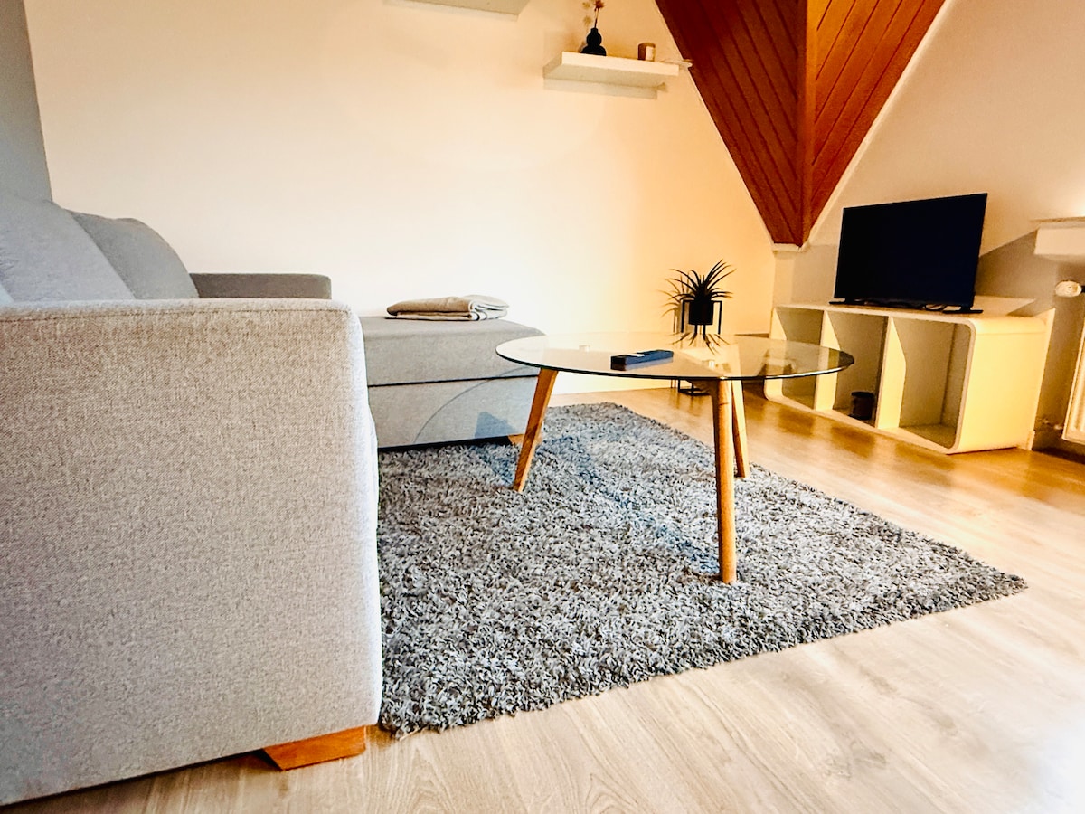 F 'nofs raħal sabiħ u l-belt famuża ta' 3 kastelli (kull 2 km) imdawra b 'foresta, mergħat u ilma li ssib it-taħlita perfetta biex tgawdiha. L-appartament komdu għandu sodda kbira ħafna u kamra tal-banju rinnovata ġdida b 'doċċa rilassanti bl-ilma li joħroġ bħax-xita. Għal żjara konvenjenti sibna kitla, toaster u hob ta 'induzzjoni għalik fi kċina żgħira sabiħa. Il-ħasil huwa fuqna. Biex tesplora l-belt sabiħa, ir-raħal u n-natura tista 'tikri 2 roti għal 5 €/jum/rota