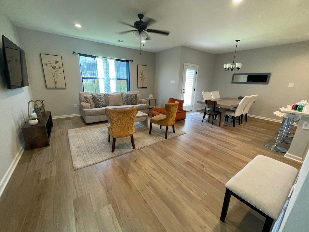 Merħba f' Geaux Mike the Tiger Retreat, townhouse ġdida fjamanta bi 3 ikmamar tas-sodda u 2.5 ikmamar tal-banju biss ftit ġebel 'il bogħod minn LSU. Adattat perfettament għall-familji, għall-ħbieb jew għall-vjaġġaturi għax-xogħol, id-dar tagħna toffri żjara moderna u eleganti b' għamara u appliances ġodda kollha biex tiżgura li jkollok esperjenza mill-isbaħ u mingħajr inkwiet. Idealment tinsab qrib LSU, li jagħmilha l-post perfett għal jiem ta' logħob, żjarat fil-kampus, jew esplorazzjoni ta' Baton Rouge. Varjetà ta' ristoranti u supermarkets fil-qrib.