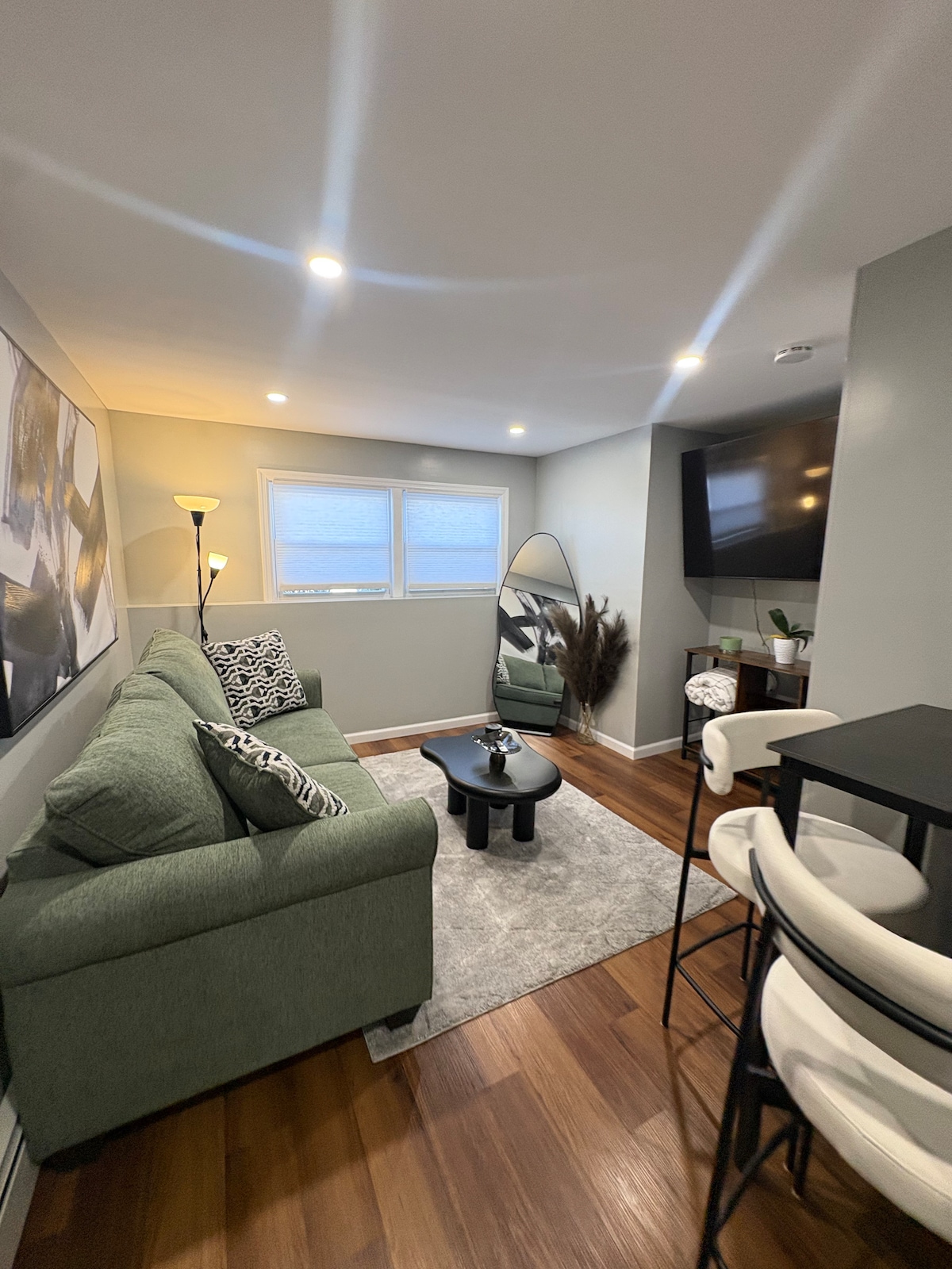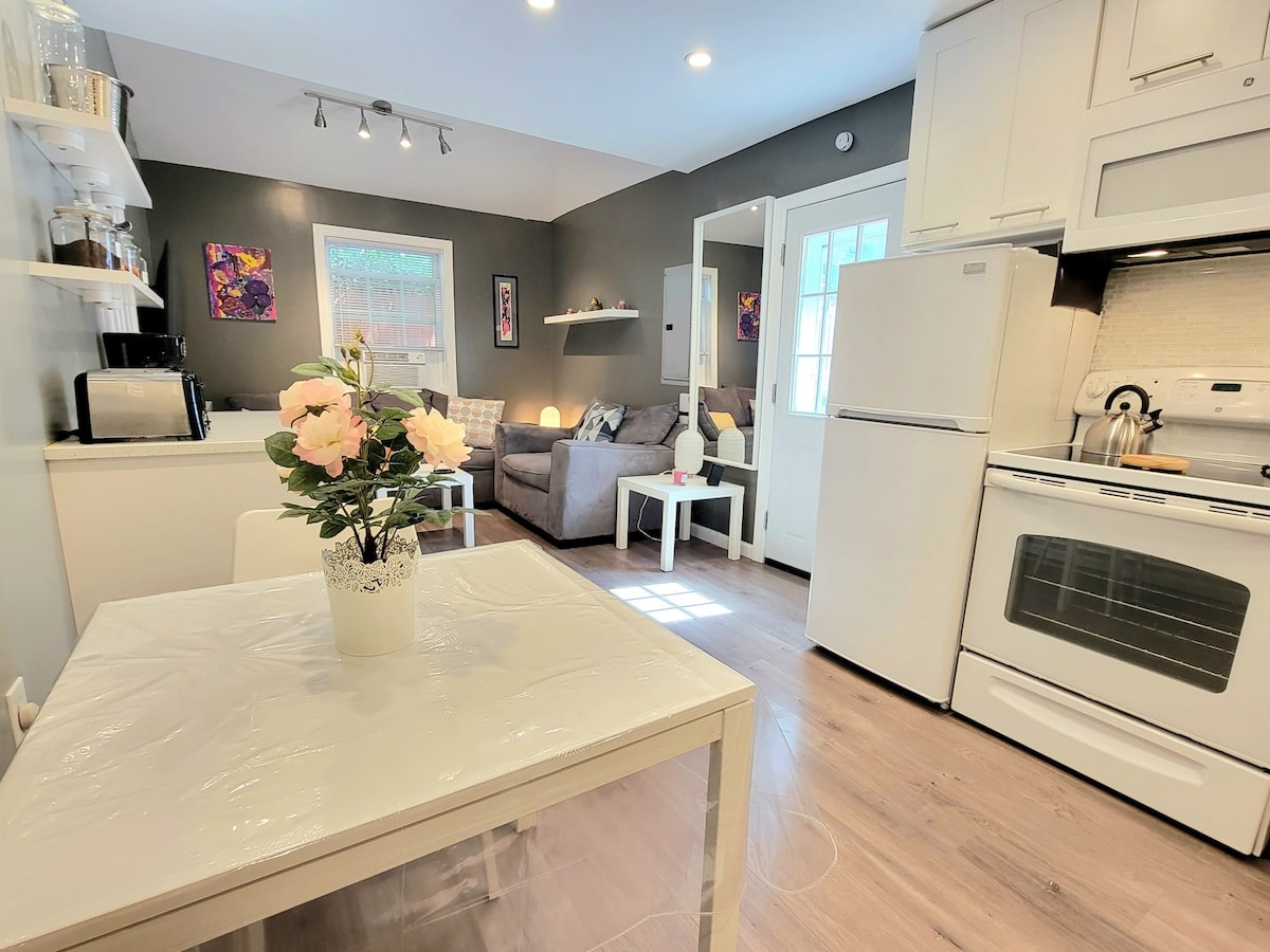 Il-kumdità tiegħu se tgħinek tħossok komdu/a wara li tidħol fil-post. Din is-Suite Żgħira għall-Klijenti ta' 280 pied kwadru hija kompletament mgħammra u mżejna tajjeb - tiġi b' kull ħaġa li tista' timmaġina. Dan jikkonsisti f' kamra tas-sodda waħda, kamra tal-banju waħda u żona tal-kċina/tal-ikel/tas-salott Daqsijiet tal-kmamar: Kamra tas-sodda: 10 piedi x 7 1/2 piedi Żona DR tal-kċina LR: 19 pied x 10 piedi Banju: 40" x 80" Minħabba kemm hija qrib ta' kollox - Huwa perfett għall-klijenti li qed jippjanaw li jivvjaġġaw lejn il-belt bil-ferrovija jew jiċċaqalqu b' Uber.