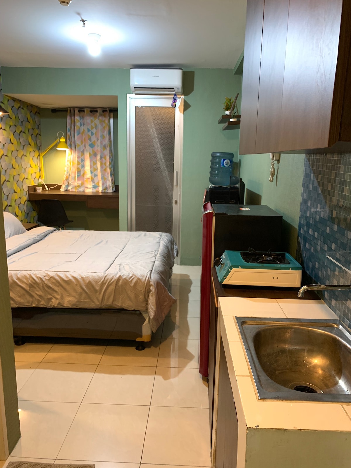 ĠDIDA!! u kun minn tal-ewwel li toqgħod f' dan l-appartament tal-istudio! Din il-kamra privata lussuża li tista' toffri fin-negozju ċentrali ta' West Jakarta hija dik li qed tfittex! Għandu dak kollu li teħtieġ f' kamra ta' daqs kompatt- Kumditajiet kompluti-madwar komdu. Tinsab eżatt f' Central Park Mall, Taman Anggrek Mall, (5 minuti mixi) Fi żmien 20 minuta biss mill-ajruport, 5 minuti mixi sal-eqreb trans pubbliku tista' tmur fejn trid tesplora Jakarta