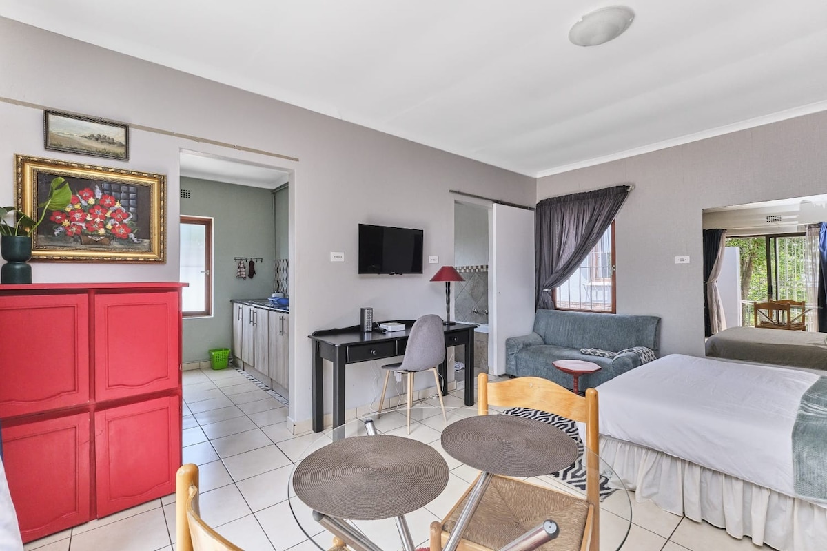 Appartament sabiħ fis-subborg ta' Little Falls/West Rand/Jhb għal 2 jew 3 persuni. -INVERTER U SISTEMA TA' RIŻERVA TAL-ILMA. Spazju dekorat mill-isbaħ b' daħla privata, żona tas-salott u kċina żgħira, kamra tal-banju separata, kamra tas-sodda/sodda doppja separata ħdejn id-dar ewlenija, iżda mmexxija individwalment. L-ebda spazju maqsum mal-oħrajn. -Il-ktajjen ewlenin kollha tal-fast food, ħwienet tal-merċa u ċentri kummerċjali eżatt mal-bieb tagħna. -FAST u WI-FI BLA ĦLAS, Netflix BLA ĦLAS, YouTube/Music premium. -42 pulzier smart TV. - Spazju għax-xogħol u ħafna spazju fil-gwardarobba.