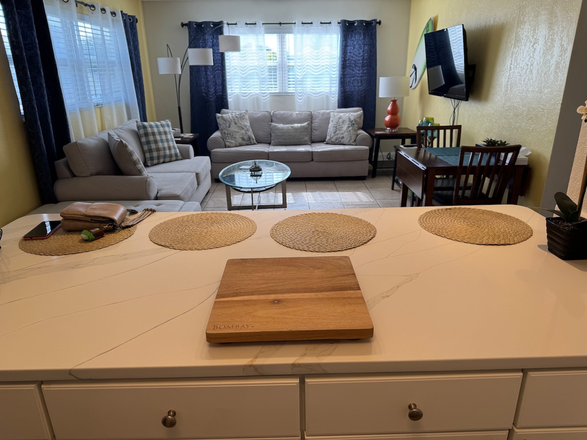 Appartament studio komdu li għadu kif ġie rranġat mill-ġdid b'ħafna kumditajiet, blokka waħda 'l bogħod mill-bajja. Jinsabu b 'mod konvenjenti bejn Port Canaveral u Downtown Cocoa Beach. Vaganza fuq il-bajja nadifa u affordabbli bi ħwienet tal-ikel, bars u ristoranti fil-qrib. It-televiżjoni diretta hija disponibbli biss b' kont attiv għal apps ta' streaming dirett. Ibgħat messaġġ lill-Host jekk it-tul taż-żjara li tixtieq mhux disponibbli meta tkun qed tibbukkja.