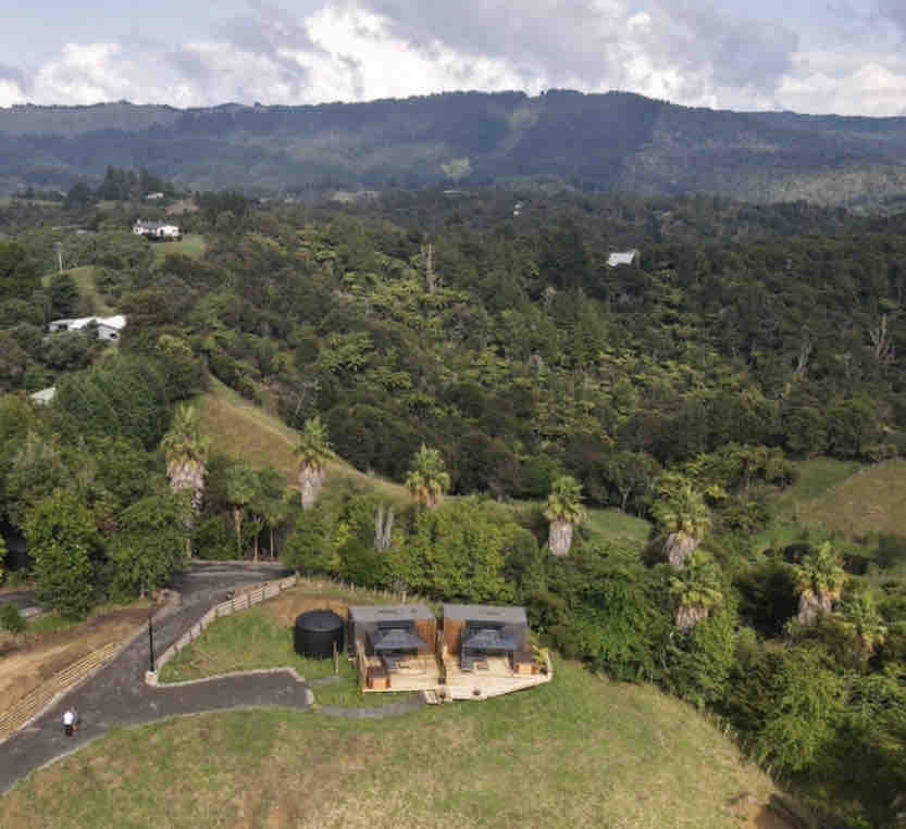 Kabina privata komda b' lożor ta' kwalità u kċina u kamra tal-banju nofshom magħluqa mgħammra sew barra minn veranda mgħottija, biż-żona tal-ikel fuq barra għandha heater biex toħloq spazju komdu u sħun. Il-kabina tinsab f' agrituriżmu li joffri veduti mill-isbaħ, li tinsab 10 minuti 'l bogħod mill-famuż Úhope Beach u 20 minuta' l bogħod mill-Motu Trails għar-roti fil-muntanji.