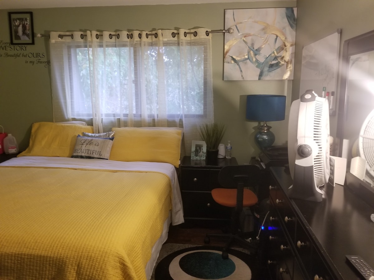 Lovely one bedroom condo.. very comfortable bed, clean , tastefully decorated, fast xfinity wifi. visitors parking available at no additional cost. This home is less than a mile from Walmart, walgreens, multiple restaurants and two gyms. A famous bakery is also less than 5 minute walk away. I feel safe with cameras throughout complex and guests have to be buzzed in. My husband and I look forward to having you as our guest.
