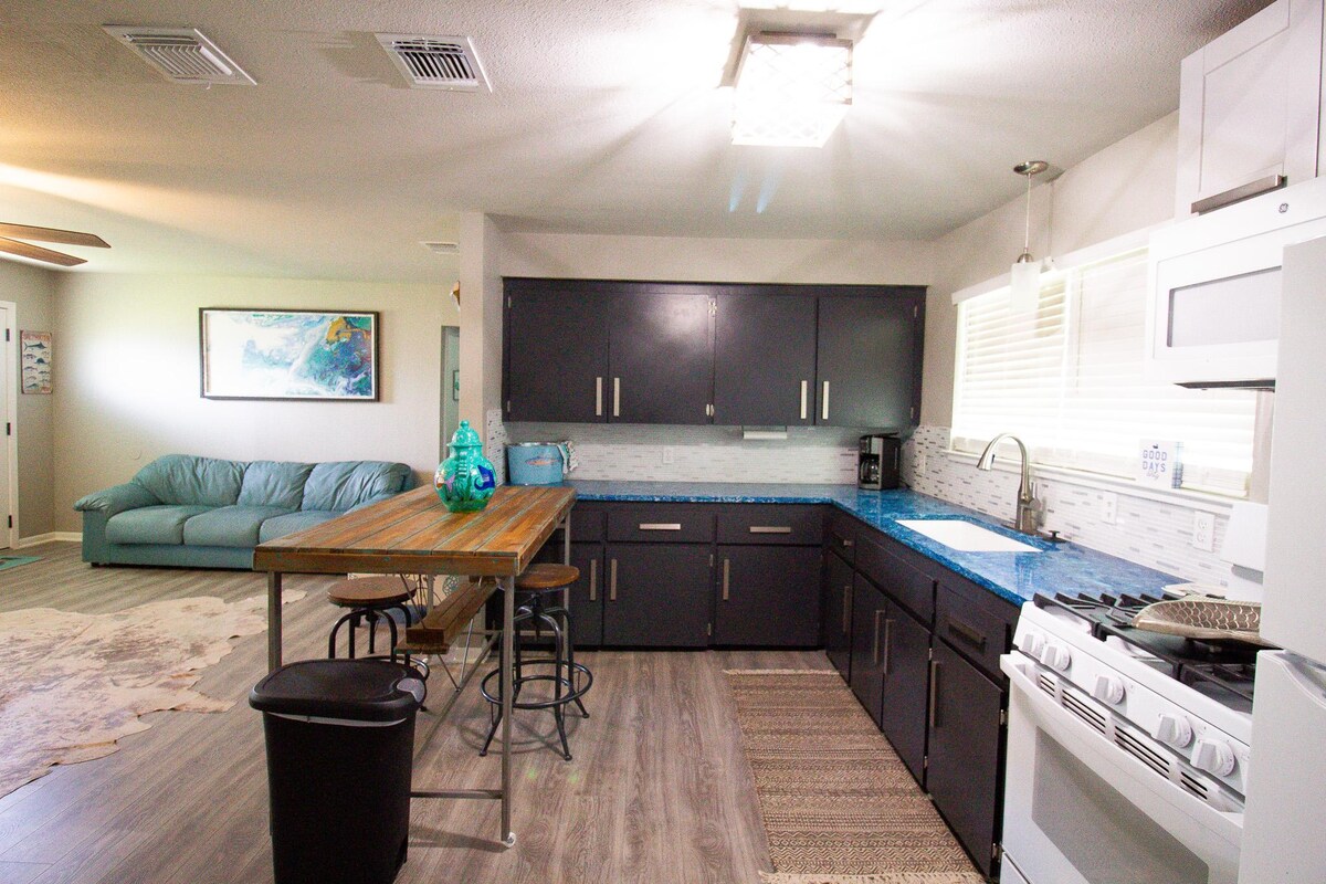 Nestled in the heart of Port Mansfield, Casa Blanca offers an exceptional escape for fishing enthusiasts and families alike. Stay in a fully renovated main house featuring two bedrooms and two baths, accented with memory-foam queen beds for restful nights. A detached apartment includes a twin bed plus a trundle, washer/dryer, a full bathroom- perfect for overflow, privacy, or multigenerational stays. Enjoy the outdoor entertaining area for some BBQ and watching the sunset. No pets allowed.