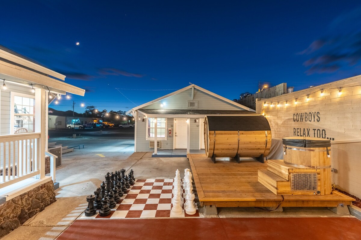 Mont Bleu by Dossou’s Desert Dwelling Just 30 miles from the Grand Canyon’s South Rim, this off-grid A-frame retreat sits at the gateway to Arizona’s most scenic desert terrain. Spend your days exploring nearby backcountry trails by UTV or e-bike, then return to soak in the private hot tub under the stars or unwind in your personal sauna. Solar-powered and eco-conscious, Mont Bleu is designed for guests seeking adventure, serenity, and a true desert experience without sacrificing comfort.