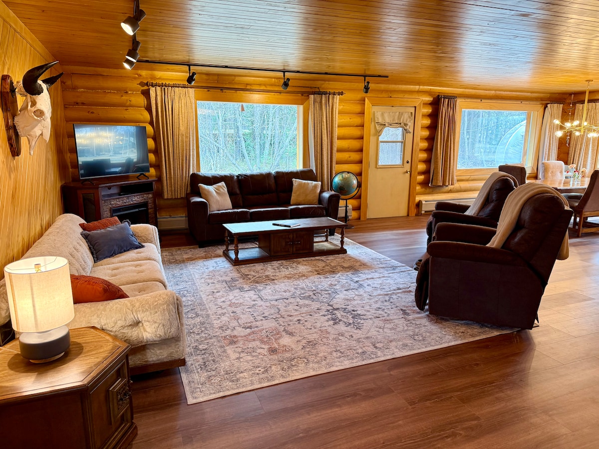 Ejja strieħ u ilgħab id-dar tiegħek 'il bogħod mid-dar! Quddiem lag sabiħ, dar cedar b' veduta spettakolari u hot tub fuq il-gverta. Din il-propjetà storika tinsab fil-qalba tal-Wied Mat-Su panoramiku tal-Alaska, imbiegħda fuq 8 ettari, iżda inqas minn mil 'il bogħod miċ-ċentru ta' Wasilla. Tajjeb għall-familji. Nadif ħafna. Gawdi l-lag, ikollok nar, u agħmel din il-bażi tad-dar tiegħek biex tesplora l-Alaska. Ċentrali għall-aqwa attrazzjonijiet tal-Alaska! Arbli tas-sajd, ġugarelli tal-lagi, kayaks, canoe, slits u snowshoes.