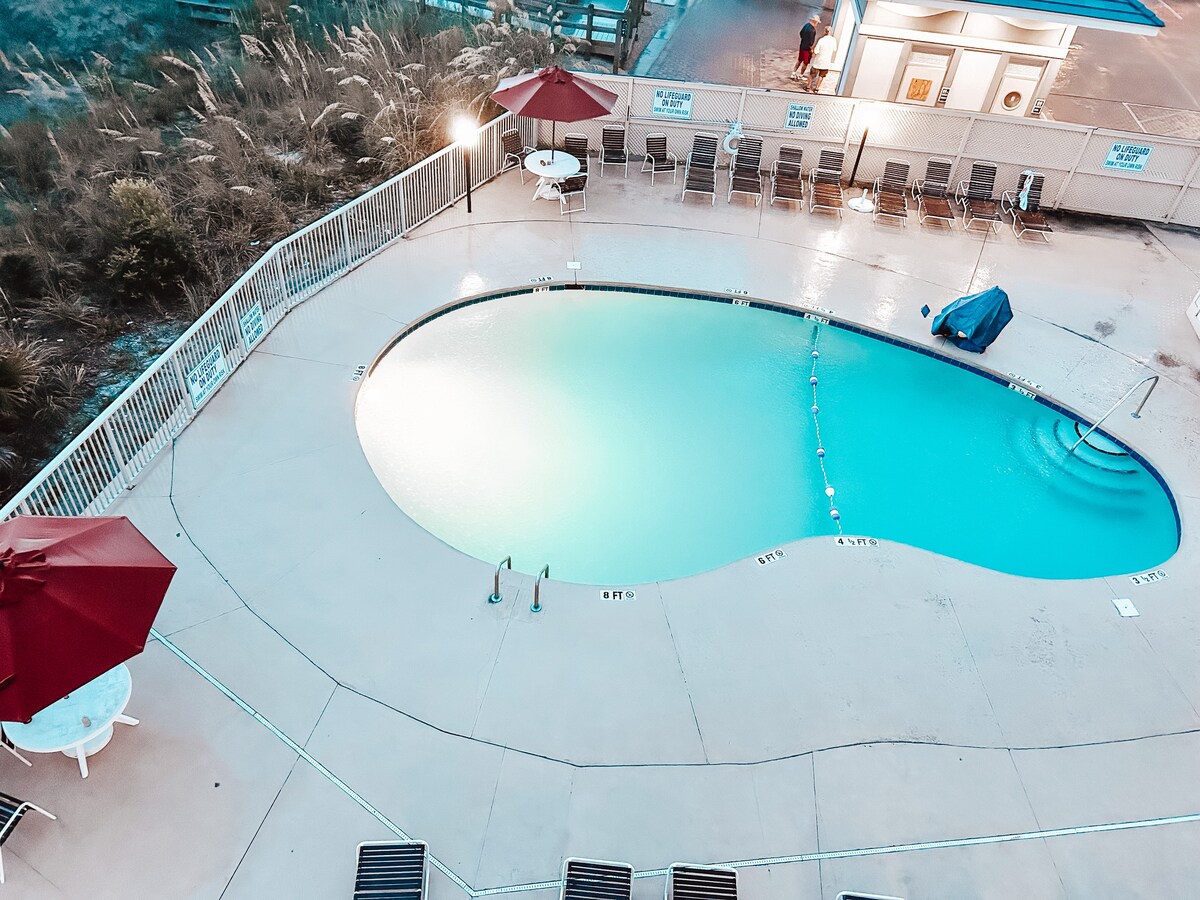 Booking Fast! Enjoy this beautiful oceanfront condo, listening to the soothing sounds of waves. Only a few spring dates available. Perfect quiet community for a beach front getaway. ⭐️ Breathtaking Oceanview from the private balcony ⭐️ Beachfront Location – step right onto the sand ⭐️ Free Parking – convenient and stress-free ⭐️ Cozy, comfortable interiors - 2 queen beds, sleeper sofa ⭐️ Minutes away from restaurants, Barefoot Landing, and pristine golf courses ⭐️ All-inclusive pricing (n