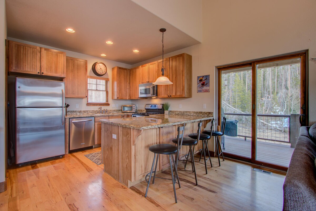 Townhome A-Frame moderna/rustika b’tliet sulari, li għadha kif ġiet irranġata, fuq ir-rotta tax-shuttle bla ħlas. Żgħir u komdu, dan il-post b’2 ikmamar tas-sodda (flimkien ma’ sodda f’loft) jista’ jakkomoda b’mod komdu 5 persuni, iżda għandu jiġi nnutat li hemm kamra tal-banju sħiħa waħda biss! Il-post huwa perfett: huwa kwiet u seren filwaqt li jinsab biss ftit minuti 'l bogħod miċ-ċentru ta' Winter Park u żewġ mili 'l bogħod mill-WP Resort. Vasquez Road tinsab 0.4 mili bogħod mill-bieb ta’ barra biex tkun tista’ tasal għal dak kollu li joffri l-Foresta Nazzjonali (mixjiet fit-tul, ġiti bil-qigħan tal-borra, ċikliżmu fil-muntanji)