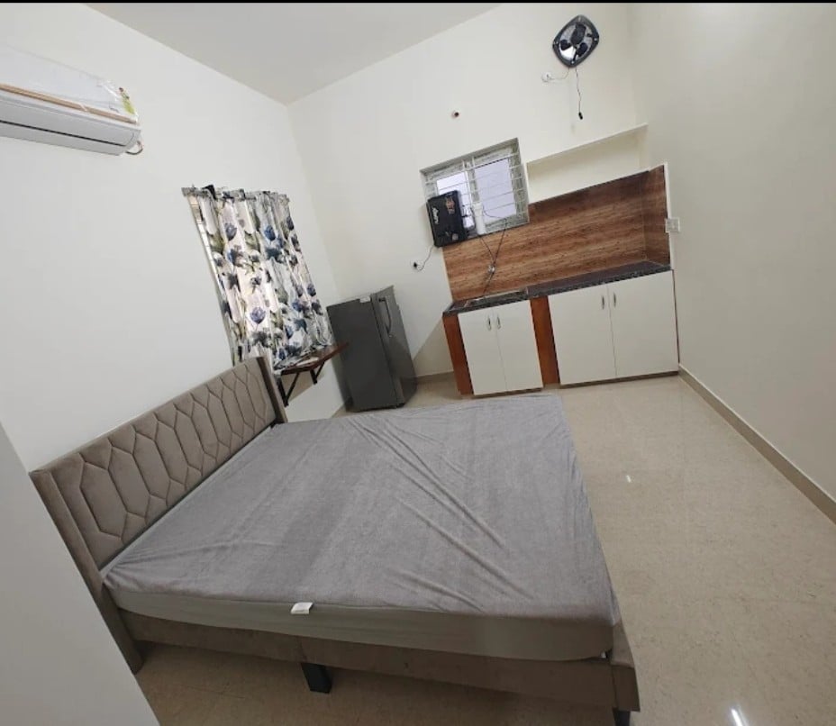 1 Kamra tas-sodda, Sala u Kċina. Nirvana Home Stays tpoġġik fi żmien 5–20 minuta mid-destinazzjonijiet importanti tan-negozju, mediċi u tax-xiri ta' Hyderabad bħal Hitech City, Yashoda/AIG Hospitals, TCS/DLF/Gachibowli, Metro, Sarath City (AMB) u Inorbit Mall, IKEA, Shilparamamam, Botanical Gardens. + Sufan fis-salott + Magna tar-Ross u t-Te, pożati, Cooker, Cooker, Cooker tal-gass, Tawa, Pan + Friġġ, Magna tal-Ħasil, Spallieri għat-tnixxif tad-drapp, Ilma sħun, Ilma Minerali +Wifi, A/c, TV, Sufan, parkeġġ 2W u Lift.