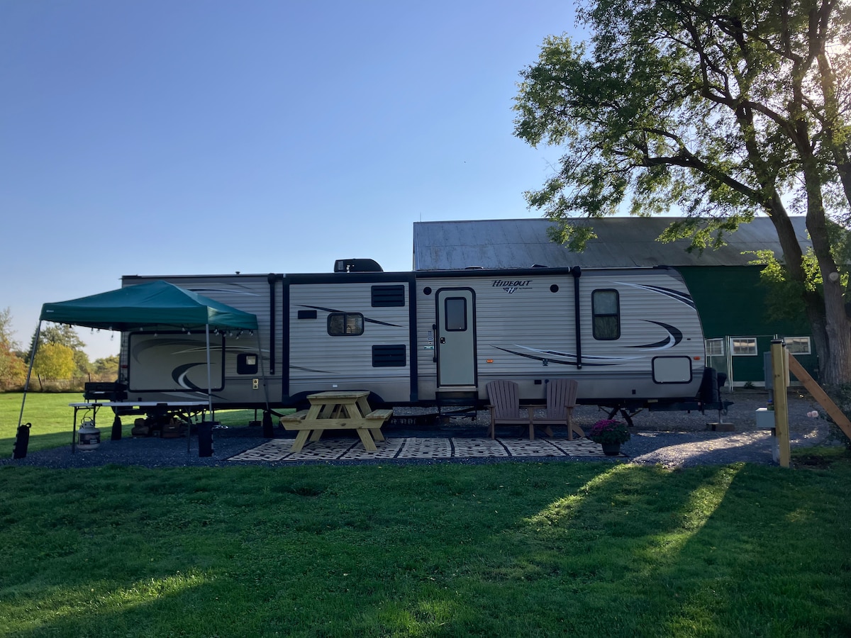 Ebda TARIFFA OĦRA! Qum il-ħsejjes u l-veduti ta' nixxiegħa rilassanti ta' Adirondack, ħdejn Barton Brook ġewwa Elizabethtown żgħira, NY. Il-bini jinsab fil-bitħa tagħna u n-naħa ta' ġewwa hija madwar 7x7 b' sodda waħda b' daqs doppju wieħed, dresser bi tliet kxaxen, friġġ ta' daqs ta' dormitorju, magna tal-kafè, ħwienet, dawl ġewwa u fuq il-veranda miftuħa. Għandna hammock skrinjat ħdejn il-kabina. Gawdi l-kafè ta' filgħodu tiegħek jew aqra ktieb bilqiegħda fir-rocker Amish ħdejn il-fireplace ta' barra.