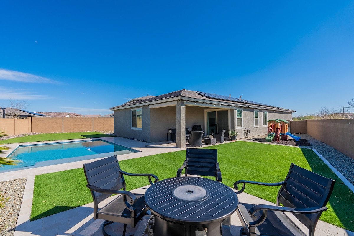 Escape to this spacious 5-bedroom getaway in Surprise, AZ — perfect for family trips, golf outings, or group vacations. With plenty of room for everyone and both private and community amenities, this home is built for relaxation and fun. Step outside to your own backyard oasis featuring a private hot tub, ideal for unwinding after a day of exploring! Guests also enjoy access to the community pool, giving you the best of both worlds for soaking up the Arizona sun!