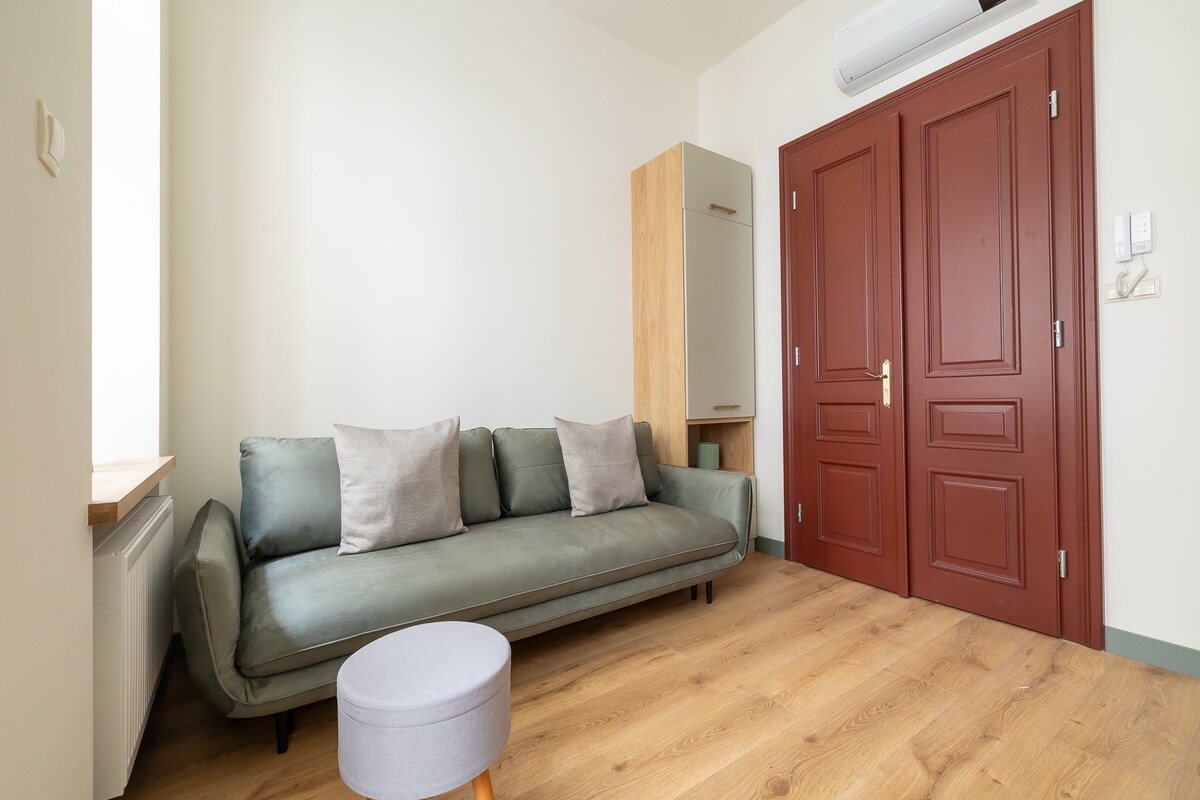 KIRI SIGUR: aħna ma nagħtux iċ-ċwievet personalment! L-aħjar kwalità f 'post mill-aqwa bejn il-Belt il-Qadima u Kazimierz! Appartament b 'żewġ kmamar, qawwi u komdu f' townhouse XIX c., triq Bonerowska. L-appartament huwa mgħammar b' kollox, WiFi stabbli (80/20Mbps) u Smart TV inkluż. 9 min. sa Pjazza tas-Suq, 12-15 min. lejn il-Kastell ta 'Wawel u l-Istazzjon tal-Ferrovija ewlieni. Salott bil-kċina żgħira, kamra tas-sodda spazjuża, kamra tal-banju tagħha stess. Merħba!