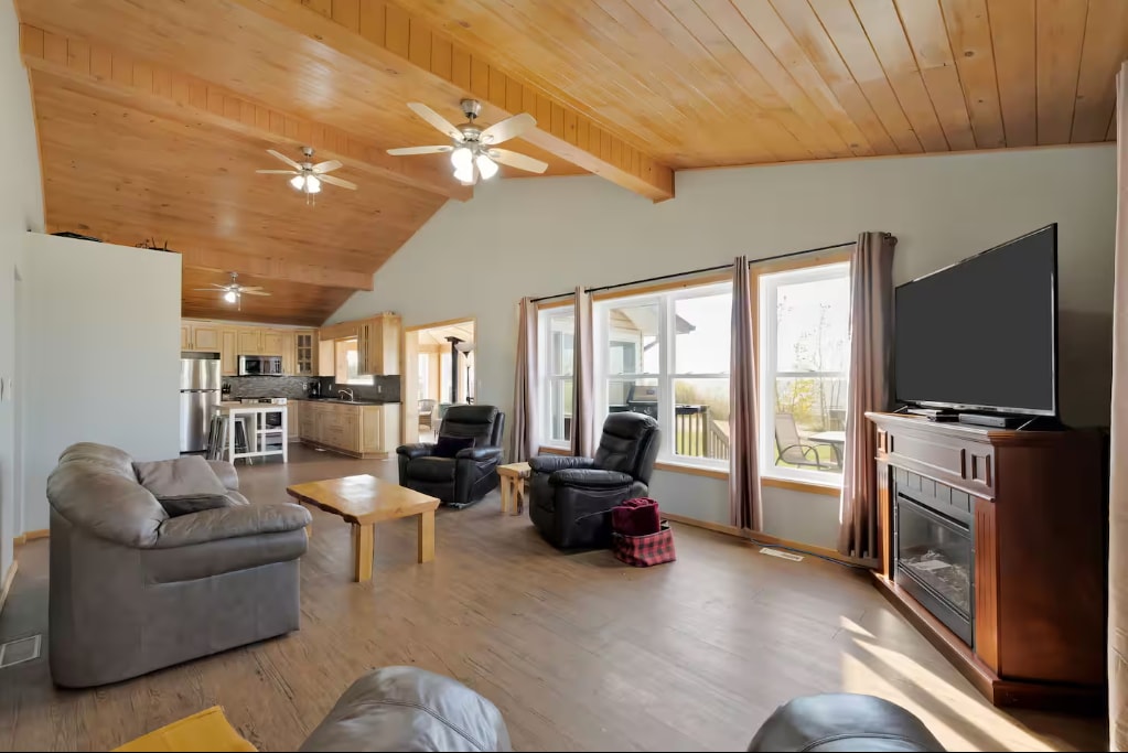 Merħba fil-kabina li għadha kif ġiet irranġata ħdejn ix-xtut tal-Lag Manitoba! Il-familja tagħna tħobb tqatta 'l-ħin hawn u aħna eċitati li naqsmu miegħek. Fis-sajf gawdi l-bajja ramlija (hija biss mixja qasira ta '5 minuti!), il-fossa tan-nirien fuq barra u l-kabina bl-arja kkundizzjonata. Fix-xitwa, l-opportunitajiet huma abbundanti għas-sajd bis-silġ fuq il-lag, bl-użu ta 'mogħdijiet tas-silġ u tgawdi l-atmosfera komda pprovduta mill-forn tal-injam ta' ġewwa. Naturalment, il-hot tub ta 'barra huwa prominenza irrispettivament minn liema żmien tas-sena!