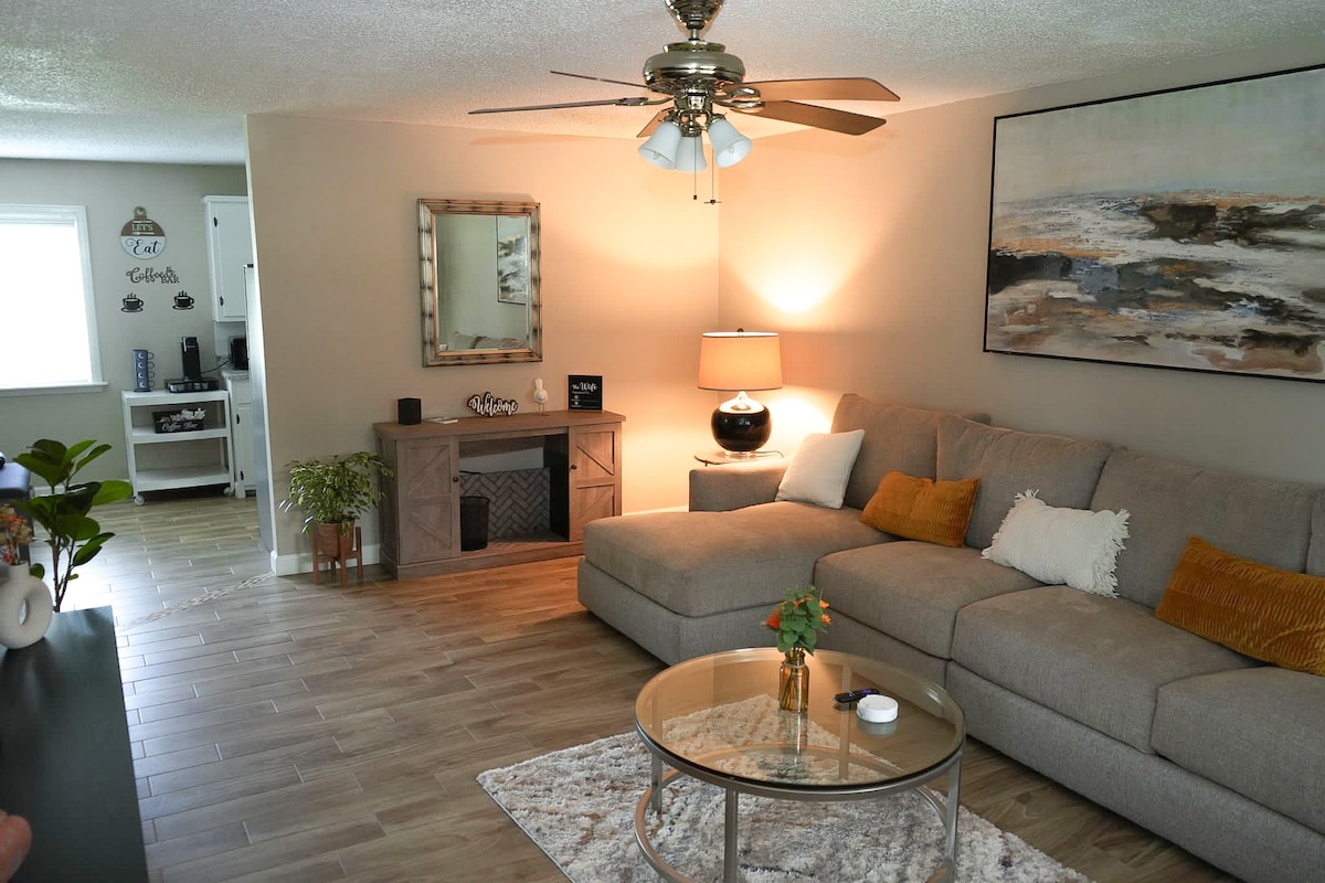 Il-grupp kollu se jgawdi minn aċċess faċli għal kollox minn din id-dar li tinsab fiċ-ċentru u li għadha kif ġiet irranġata. Gawdi t-televixin intelliġenti bil-Wi-Fi. Hemm kamera taċ-ċirku tal-qanpiena tal-bieb mill-bieb ta 'barra għas-sigurtà. Tinsab ukoll ħdejn id-dar ta' Oak Street Retreat fuq Airbnb ukoll 🏡