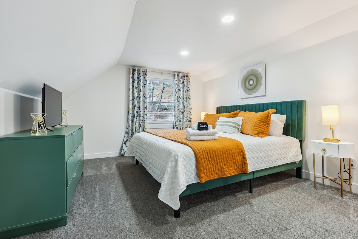 Escape to our charming 2-bedroom mid-century cottage in Columbus, OH! Perfect for 4 guests, this vintage-inspired retreat features a chef's kitchen, cozy living area with a record player, music room with a piano and guitar, bright bathroom with key toiletries, and a private, fenced backyard with a fire pit and deck. Centrally located in a peaceful neighborhood, it's the ideal pet-friendly base for exploring the city. Enjoy modern comforts like high-speed Wi-Fi in a unique, stylish setting.