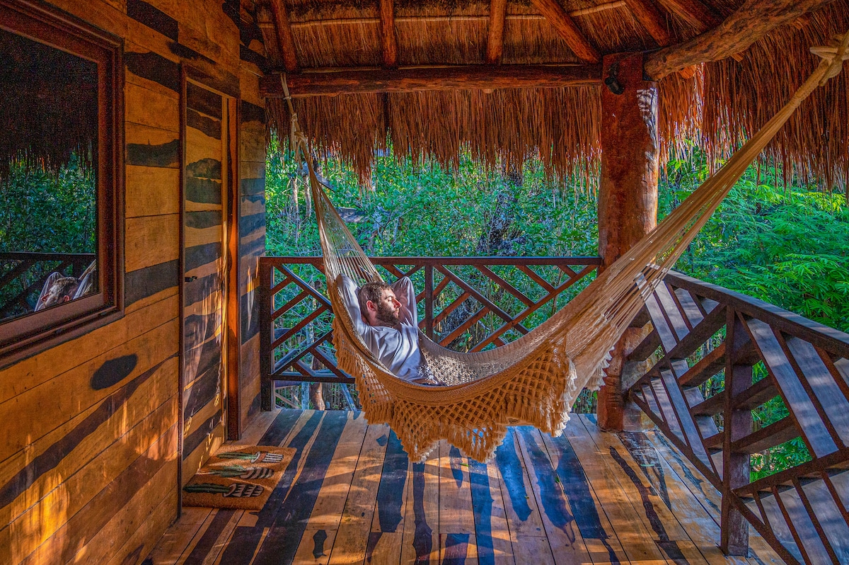 Skopri l-iktar dar ċkejkna maġika fil-ġungla. Post uniku mfassal biex jgħaġġeb, imdendel fuq is-siġar b'cenote quddiemu. Irrilassa fil-pixxina privata tiegħek, isma' l-ħsejjes tan-natura u ħoss ir-riħ mis-siġar. Jinsab ġewwa K’Näj, 20 minuta 'l bogħod minn Tulum u 40 minuta' l bogħod minn Playa del Carmen, b' aċċess faċli għall-aqwa bajjiet, parks u ġojjelli ta' Riviera. Natura, kumdità u esklussività; kollha f' post wieħed. Żjara li qatt mhu se tinsiha