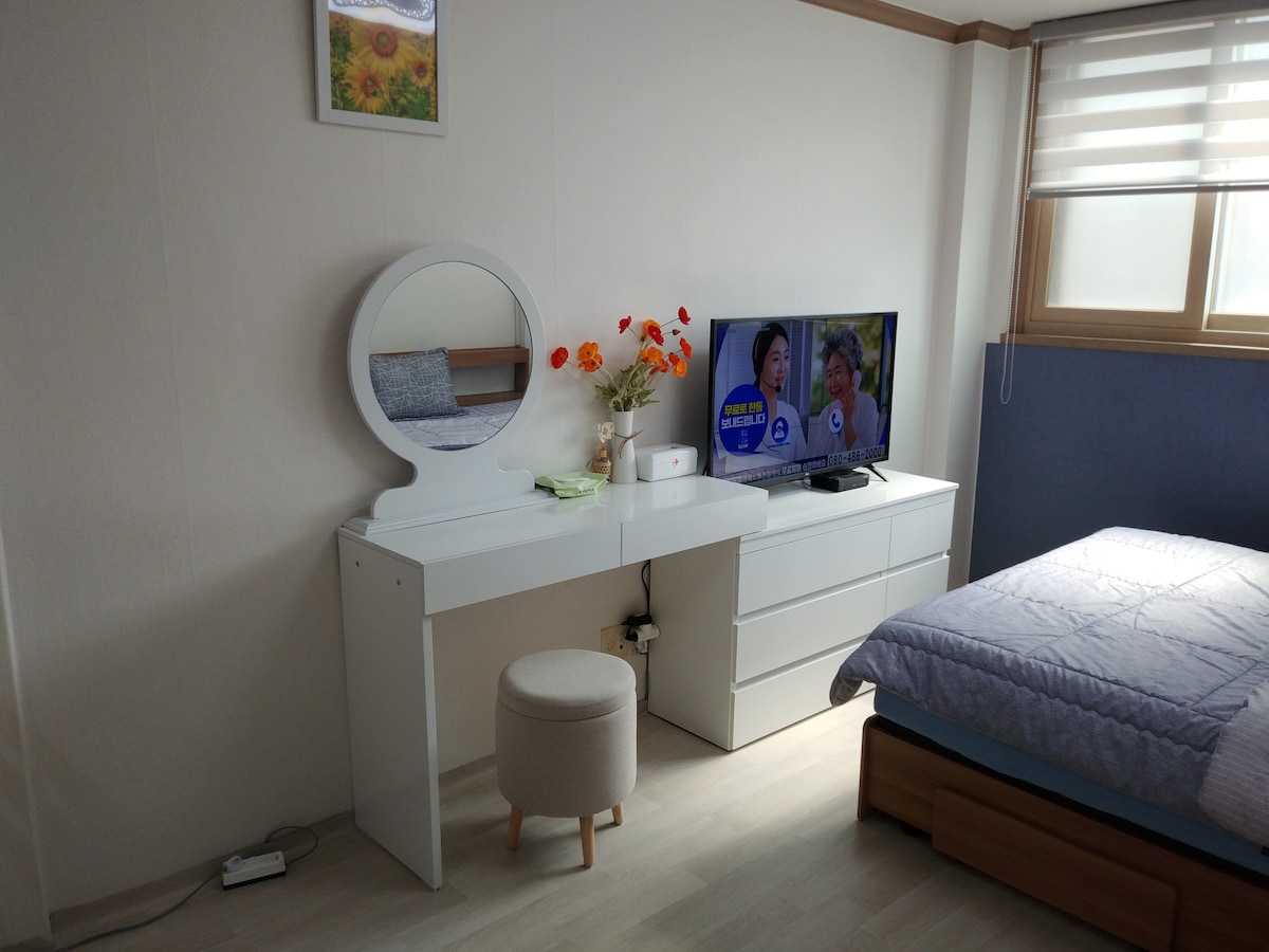 - Serra tiegħi tagħmel l-almu tagħha biex jiddiżinfetta l-kmamar sewwa qabel ma jidħlu - Igawdu komdu f 'post li jinsab fiċ-ċentru u kwiet. Igawdu trasport konvenjenti u l-post f 'Bucheon bi prezz raġonevoli ta' 30,000 rebaħ kuljum. - 5 minuti mill-Istazzjon tan-Nofsinhar ta 'Bucheon - 70 minuti mill-Ajruport ta' Incheon (bis-subway) - 40 minuta mill-Istazzjon Seoul (bil-subway) - Xarabanks disponibbli mill-Istazzjon Bucheon għal partijiet varji taż-żona metropolitana. - Wifi, queen size bed, spallieri, dressing table, friġġ, arja kkundizzjonata, magna tal-ħasil kompluta