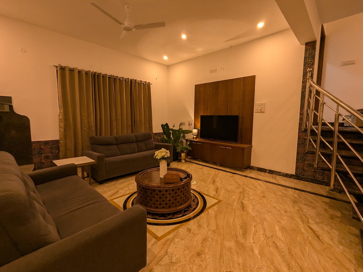 Merħba ġewwa BluVillaa – il-ħrib eleganti tiegħek ta' 2BHK fil-qalba ta' Yercaud. Din id-dar iddisinjata bi ħsieb, li tinsab biss mixja qasira 'l bogħod minn Yercaud Lake u Sky Park, fiha kmamar tas-sodda b' arja kkundizzjonata, kmamar tal-banju moderni b' ilma sħun, salott spazjuż u terrazzin miftuħ. Ideali għall-familji u l-koppji li qed ifittxu taħlita ta' kumdità, stil u natura. Irrilassa, skopri u ħejji memorji dejjiema ġewwa BluVillaa.
