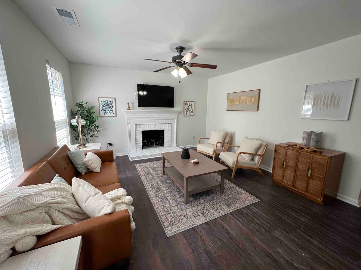 Aħna kuntenti li nilqgħu lilek u lit-trabi bil-pil tiegħek għal 3 kmamar tas-sodda u 2 banju sħiħ 1300sq/ft bungalow ftit minuti biss minn ċentru simpatiku ta 'Fort Mill bis-sħana skola qadima kollha tagħha, vibe vintage, kafetteriji, boutiques, taverni, taverni, mużika live, parks, u knejjes. Il-vaganza ħelwa perfetta fi tmiem ġurnata ta 'sightseeing, ċelebrazzjoni mal-familja u mal-ħbieb, wara l-logħba l-kbira, jew ladarba tkun ftaħt dik il-laqgħa tan-negozju jew xogħol ġdid. Aħna nilqgħu skont ta' 10% lil kull Militar. Annimali domestiċi w depożitu.